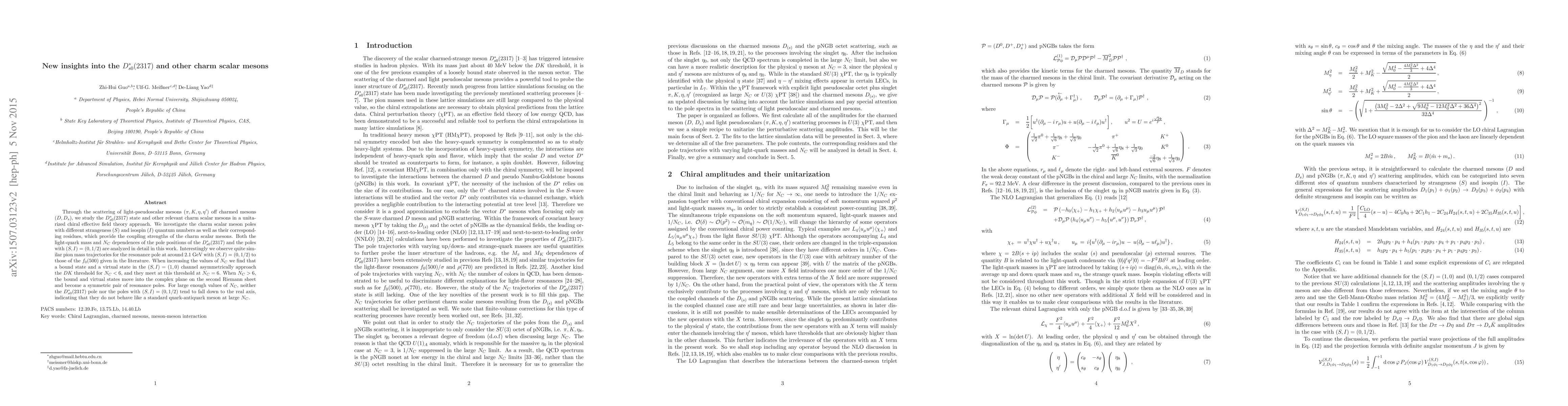 Through the scattering of light-pseudoscalar mesons ($\pi,K,\eta,\eta'$) off charmed mesons ($D, D_s$), we study the $D^{*}_{s0}(2317)$ state and other relevant charm scalar mesons in a unitarized chiral effective field theory approach. We investigate the charm scalar meson poles with different strangeness ($S$) and isospin ($I$) quantum numbers as well as their corresponding residues, which provide the coupling strengths of the charm scalar mesons. Both the light-quark mass and $N_C$ dependences of the pole positions of the $D^{*}_{s0}(2317)$ and the poles with $(S,I)=(0,1/2)$ are analyzed in detail in this work. Interestingly we observe quite similar pion mass trajectories for the resonance pole at around 2.1 GeV with $(S,I)=(0,1/2)$ to those of the $f_0(500)$ given in the literature. When increasing the values of $N_C$ we find that a bound state and a virtual state in the $(S,I)=(1,0)$ channel asymmetrically approach the $D K$ threshold for $N_C<6$, and they meet at this threshold at $N_C=6$. When $N_C>6$, the bound and virtual states move into the complex plane on the second Riemann sheet and become a symmetric pair of resonance poles. For large enough values of $N_C$, neither the $D^{*}_{s0}(2317)$ pole nor the poles with $(S,I)=(0,1/2)$ tend to fall down to the real axis, indicating that they do not behave like a standard quark-antiquark meson at large $N_C$.