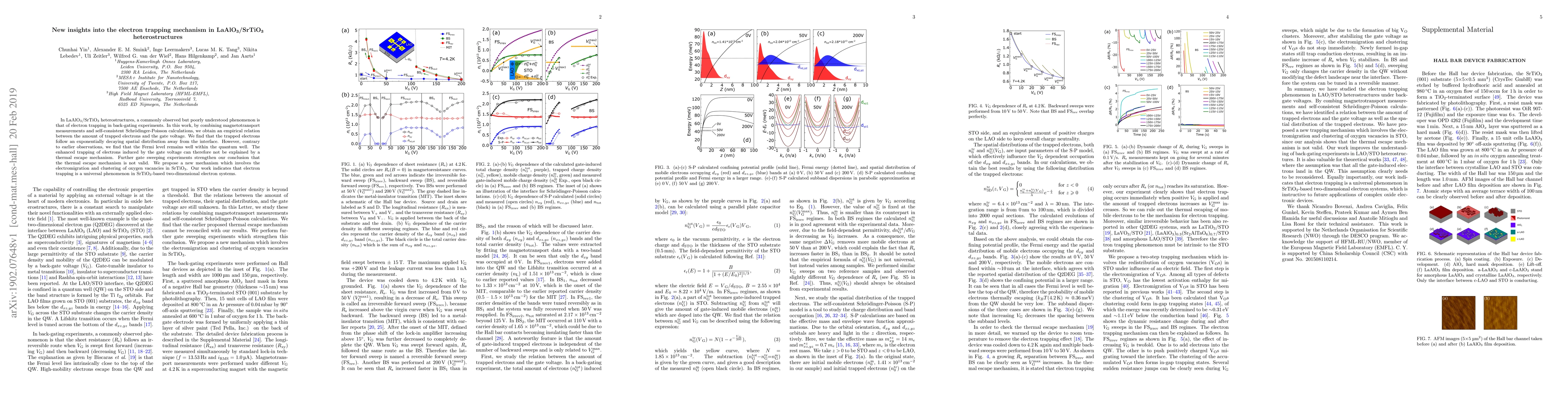 In LaAlO3/SrTiO3 heterostructures, a commonly observed but poorly understood phenomenon is that of electron trapping in back-gating experiments. In this work, by combining magnetotransport measurements and self-consistent Schroedinger-Poisson calculations, we obtain an empirical relation between the amount of trapped electrons and the gate voltage. We find that the trapped electrons follow an exponentially decaying spatial distribution away from the interface. However, contrary to earlier observations, we find that the Fermi level remains well within the quantum well. The enhanced trapping of electrons induced by the gate voltage can therefore not be explained by a thermal escape mechanism. Further gate sweeping experiments strengthen our conclusion that the thermal escape mechanism is not valid. We propose a new mechanism which involves the electromigration and clustering of oxygen vacancies in SrTiO3. Our work indicates that electron trapping is a universal phenomenon in SrTiO3-based two-dimensional electron systems.