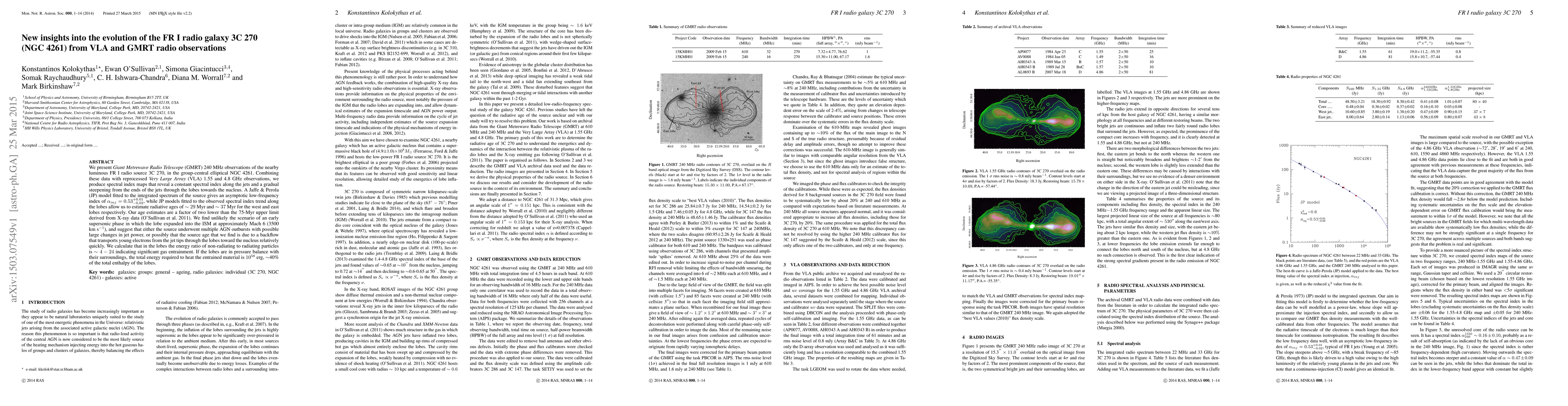 This paper combines VLA and GMRT radio observations to study the evolution of the FR I radio galaxy 3C 270. Spectral index maps suggest a gradual steepening from the jets to the lobes, indicating radiative ages of ~29 Myr and ~37 Myr for the west and east lobes respectively, suggesting multiple AGN outbursts or a backflow mechanism.