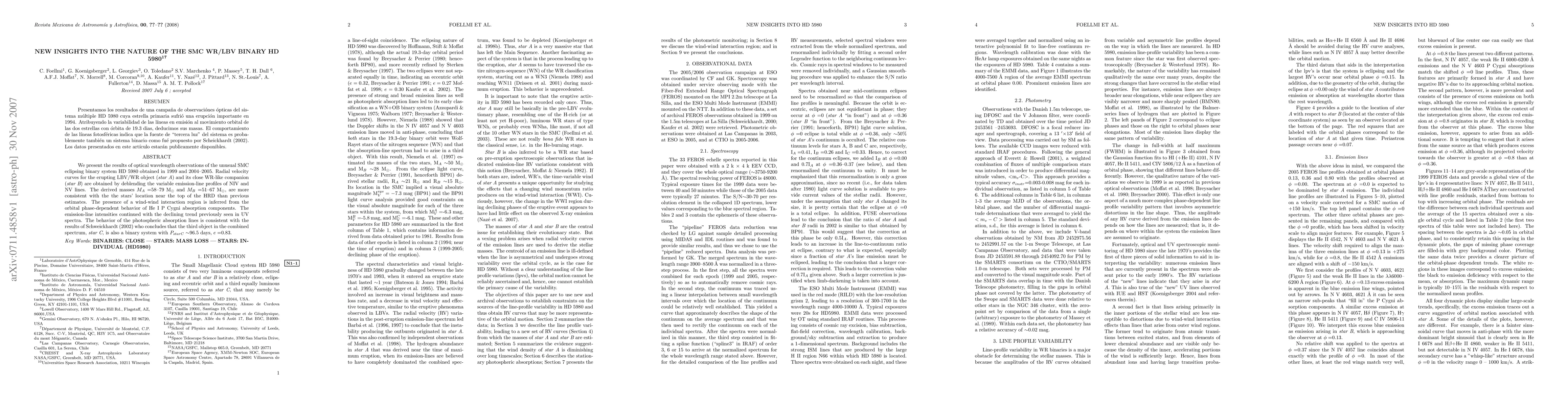 This paper reports on optical observations of the SMC eclipsing binary HD 5980, revealing new mass estimates for its stars and suggesting a wind-wind interaction region. The findings indicate star A, an LBV/WR object, and star B, a WR-like companion, both have masses consistent with their position in the HRD, and a third binary system, star C, is also present.