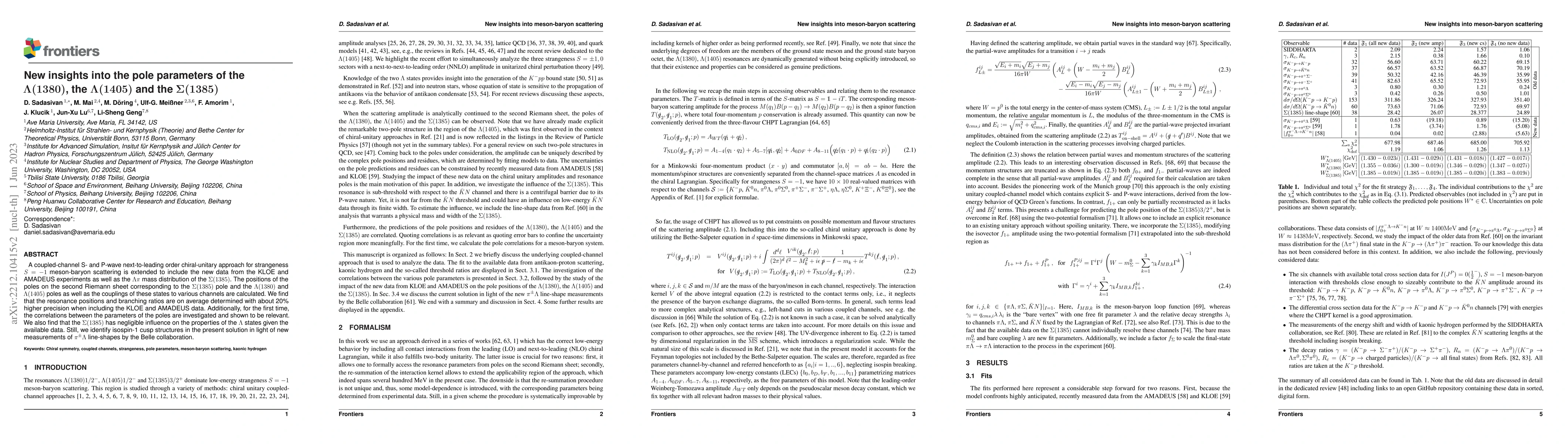 A coupled-channel S- and P-wave next-to-leading order chiral-unitary approach for strangeness $S=-1$ meson-baryon scattering is extended to include the new data from the KLOE and AMADEUS experiments as well as the $\Lambda\pi$ mass distribution of the $\Sigma(1385)$. The positions of the poles on the second Riemann sheet corresponding to the $\Sigma(1385)$ pole and the $\Lambda(1380)$ and $\Lambda(1405)$ poles as well as the couplings of these states to various channels are calculated. We find that the resonance positions and branching ratios are on average determined with about 20\% higher precision when including the KLOE and AMADEUS data. Additionally, for the first time, the correlations between the parameters of the poles are investigated and shown to be relevant. We also find that the $\Sigma(1385)$ has negligible influence on the properties of the $\Lambda$ states given the available data. Still, we identify isospin-1 cusp structures in the present solution in light of new measurements of $\pi^\pm\Lambda$ line-shapes by the Belle collaboration.