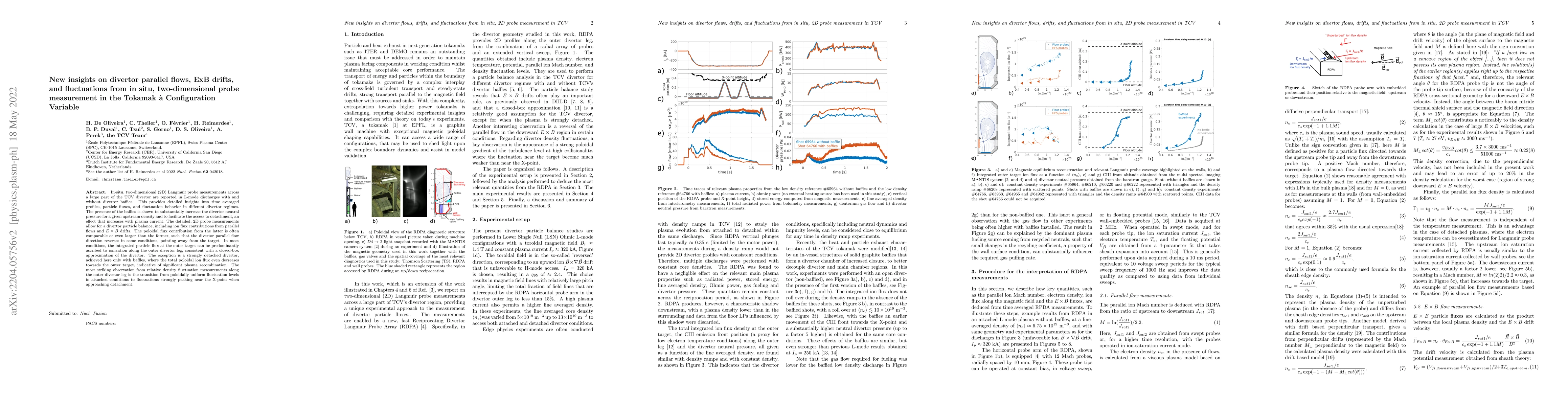 This paper reports detailed 2D Langmuir probe measurements in TCV's divertor, revealing that baffles increase neutral pressure and facilitate detachment, while parallel flows and ExB drifts significantly influence particle fluxes. Fluctuations transition from uniform to peaked near the X-point as detachment approaches.