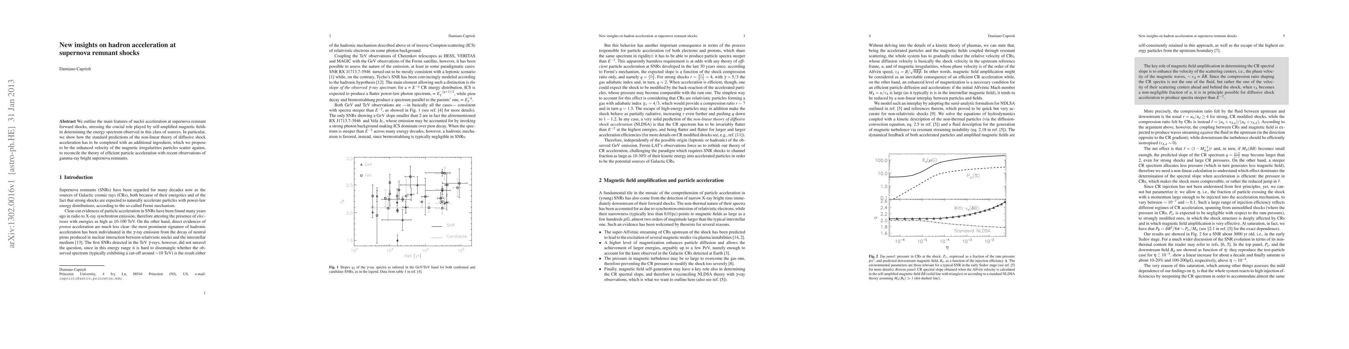 This paper explores the mechanisms behind nuclei acceleration at supernova remnant shocks, emphasizing the importance of self-amplified magnetic fields. It proposes that the standard theory of diffusive shock acceleration must incorporate the enhanced velocity of magnetic irregularities to align with recent gamma-ray observations.