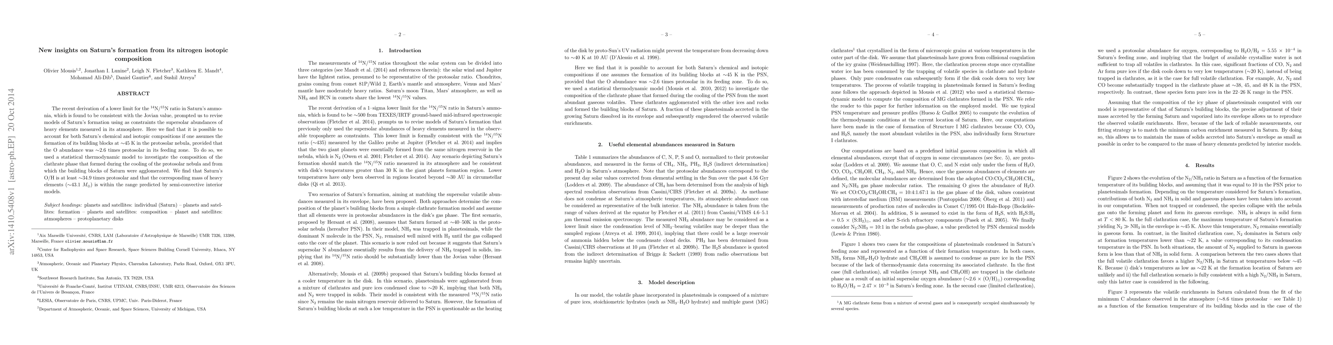 Researchers found that Saturn's formation can be explained if its building blocks formed at 45K in a protosolar nebula with high oxygen abundance. This suggests Saturn has an oxygen content at least 34.9 times higher than the sun's.