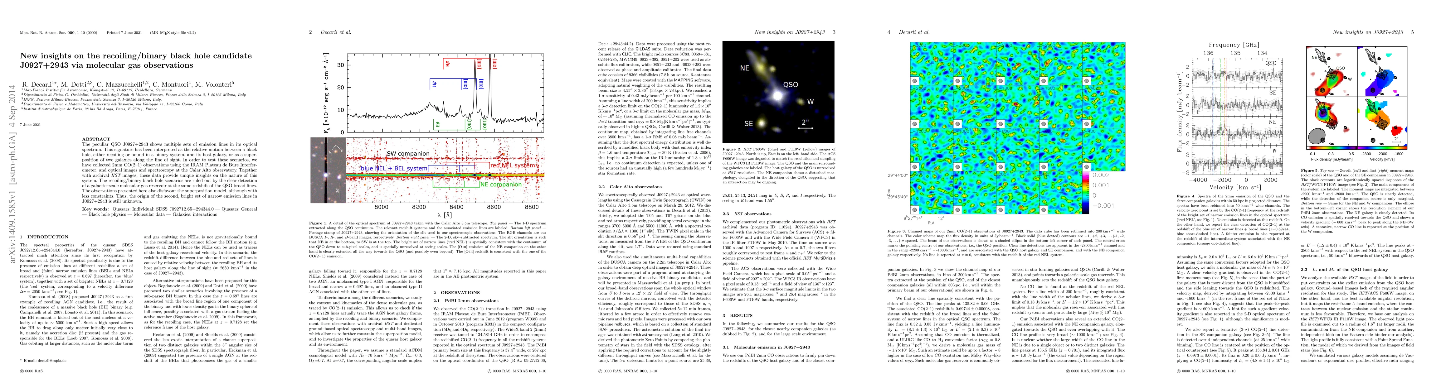 New observations rule out recoiling/binary black hole scenarios for QSO J0927+2943, but the origin of a second emission line set remains unknown. The data provide unique insights into the nature of this system, including a galactic-scale molecular gas reservoir.