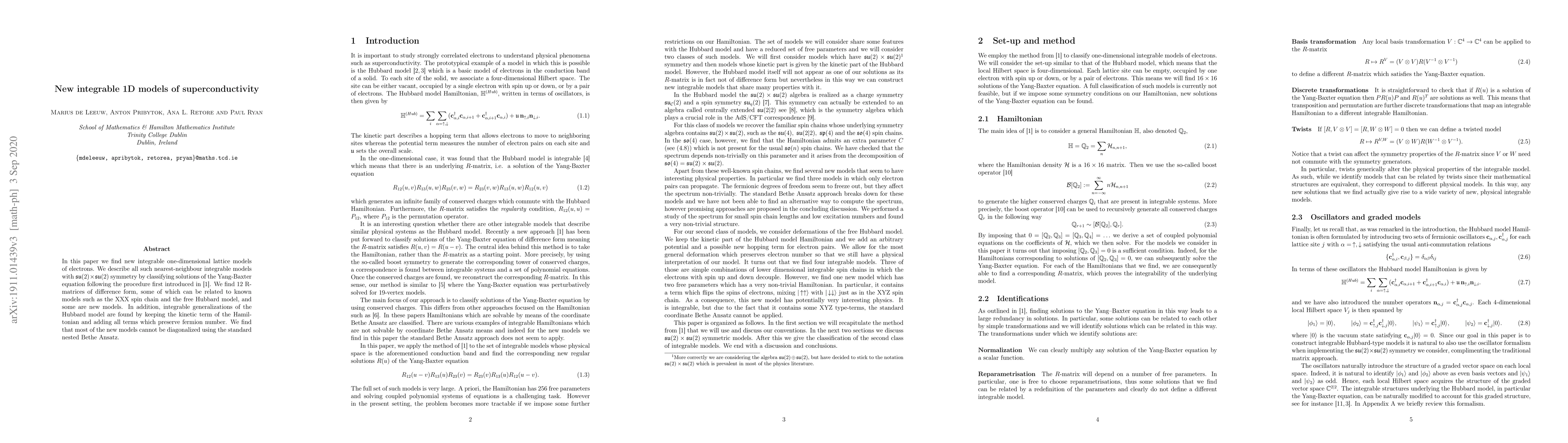 This paper identifies and classifies new integrable one-dimensional lattice models of electrons with su(2)xsu(2) symmetry, discovering 12 distinct R-matrices, some of which relate to known models like the XXX spin chain and the free Hubbard model. Most of the new models cannot be diagonalized using the standard nested Bethe Ansatz.