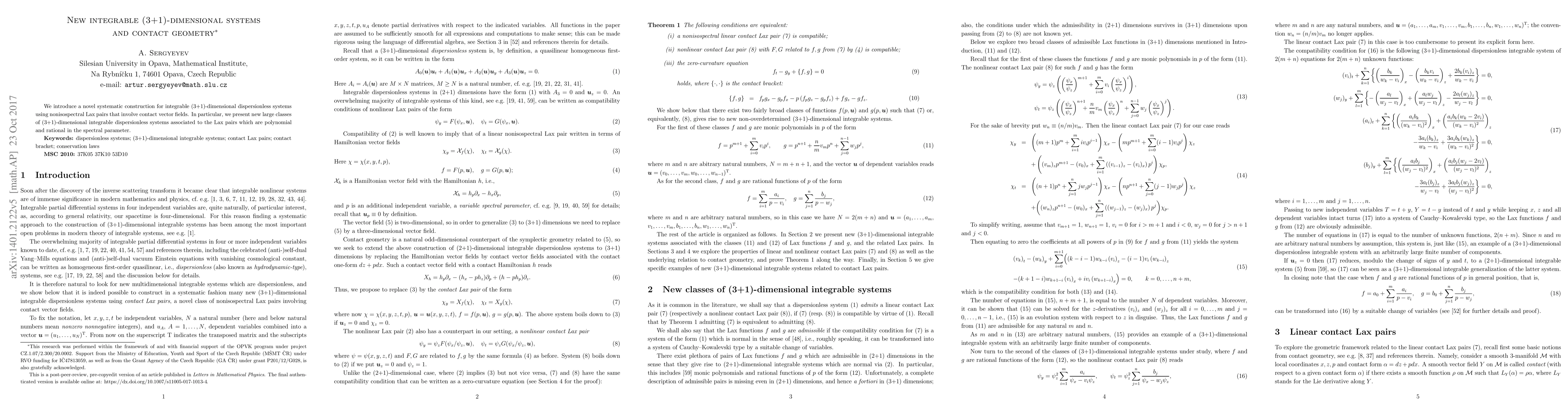 This paper presents a new method for constructing integrable (3+1)-dimensional dispersionless systems using nonisospectral Lax pairs linked to contact vector fields, introducing large classes of polynomial and rational integrable systems.