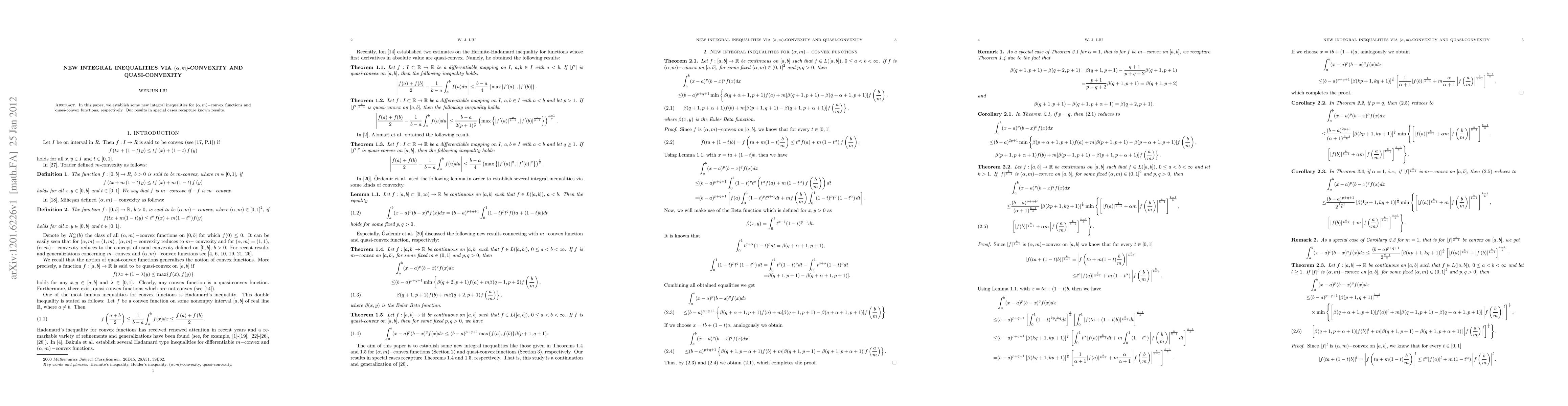 In this paper, we establish some new integral inequalities for $(\alpha, m)-$convex functions and quasi-convex functions, respectively. Our results in special cases recapture known results.