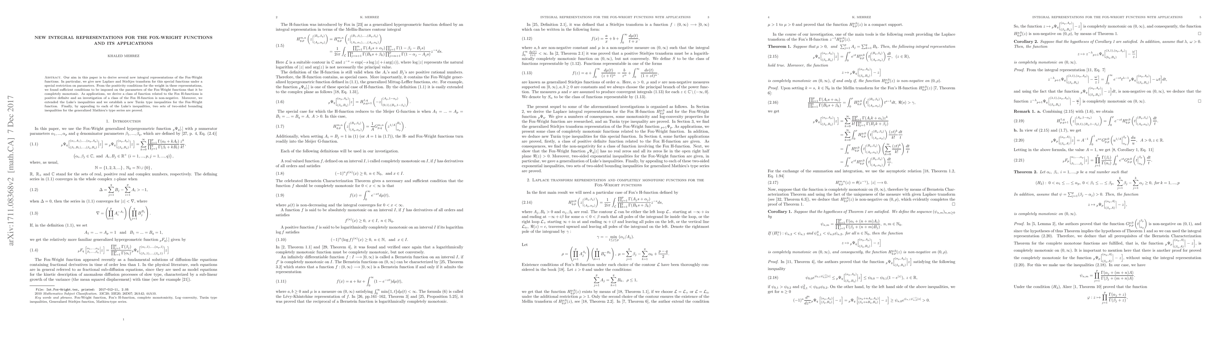 This paper derives new integral representations for Fox-Wright functions, including Laplace and Stieltjes transforms, and establishes conditions for their complete monotonicity. It also extends Luke's inequalities and proves new Turán type inequalities, along with two-sided bounding inequalities for generalized Mathieu's type series.
