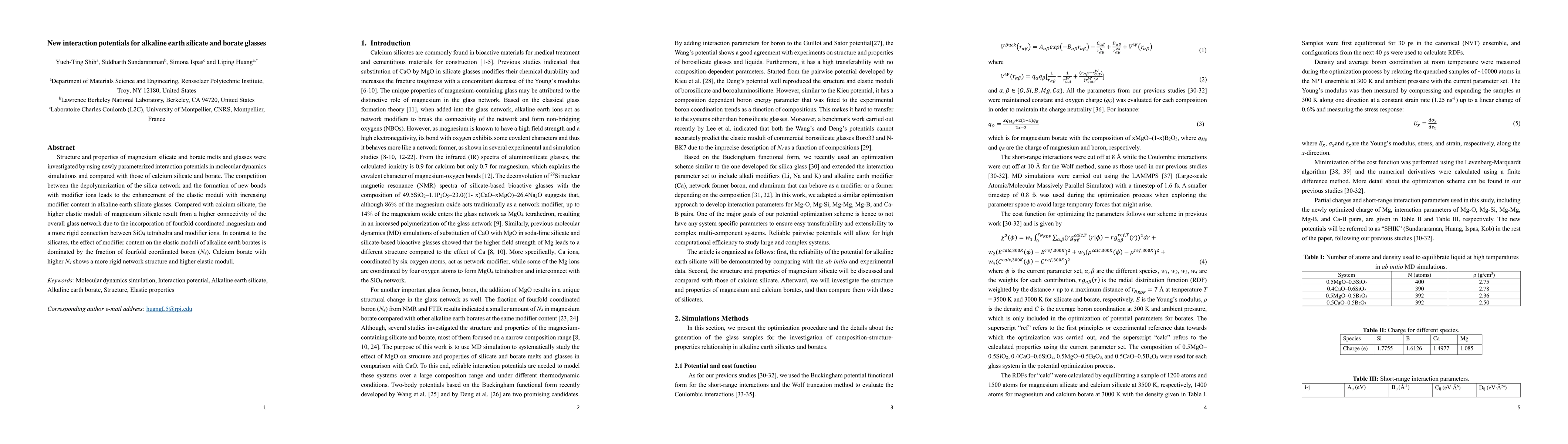 This study introduces new interaction potentials for magnesium silicate and borate glasses, showing that magnesium enhances the elastic moduli due to higher network connectivity, while calcium borate's elastic moduli increase with fourfold coordinated boron (N4) content.