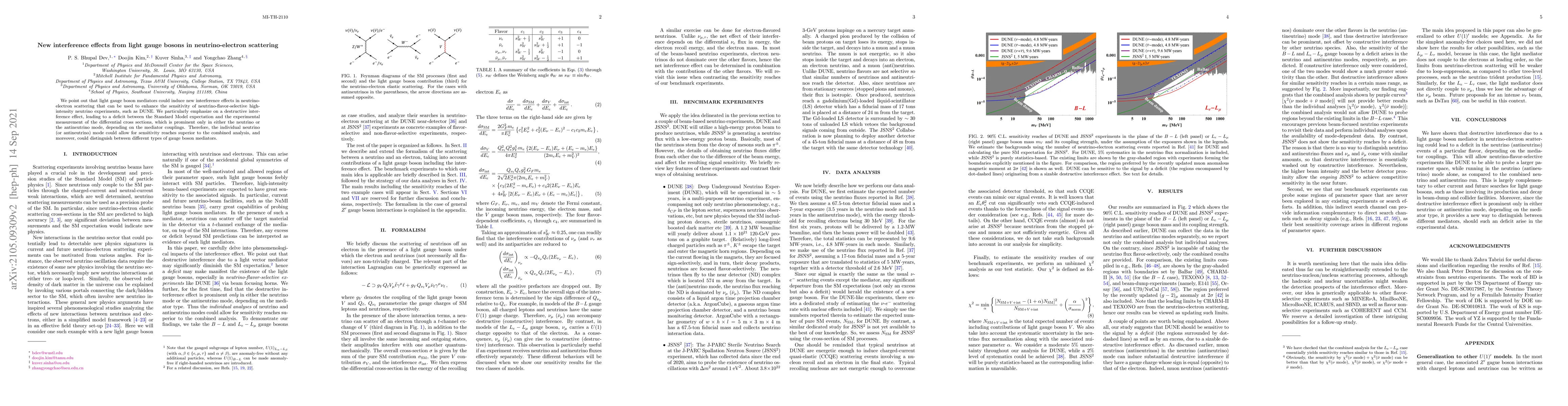 This research highlights that light gauge bosons can create distinctive interference patterns in neutrino-electron scattering, enhancing sensitivity in experiments like DUNE. These patterns, particularly a deficit in either neutrino or antineutrino modes, could help differentiate various gauge boson mediators.