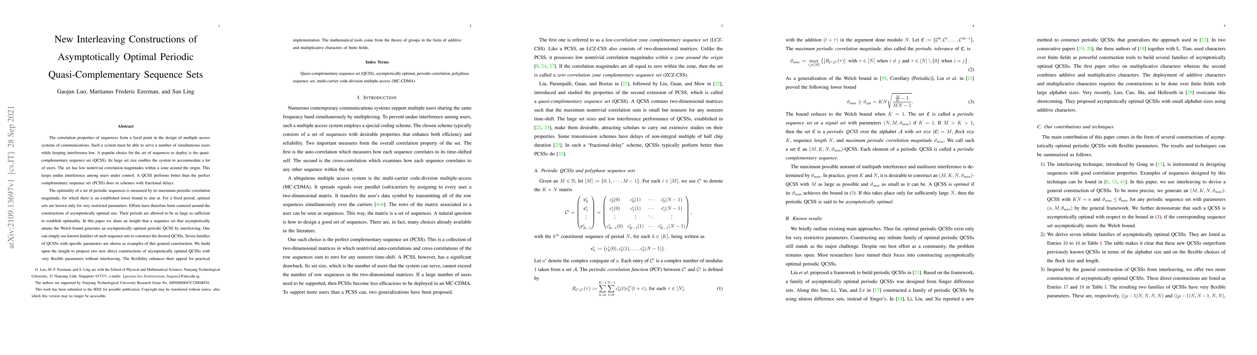 This paper introduces new constructions for asymptotically optimal periodic quasi-complementary sequence sets (QCSS) that achieve low interference in multiple access communication systems. It proposes direct constructions without interleaving, leveraging mathematical tools from group theory, and demonstrates flexibility and practical appeal.