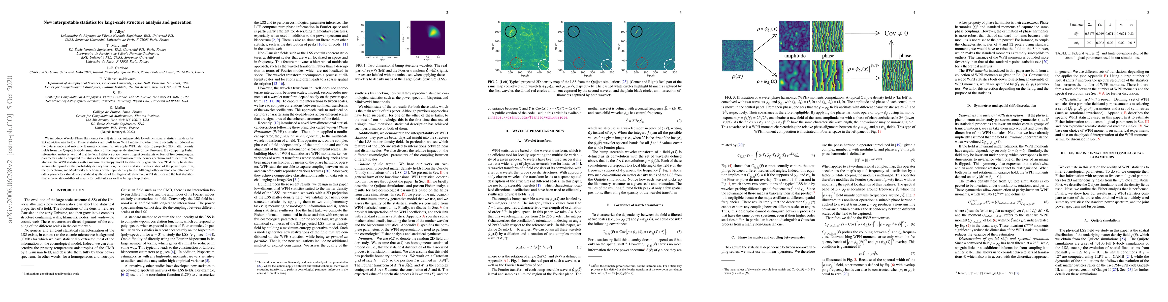 We introduce Wavelet Phase Harmonics (WPH) statistics: interpretable low-dimensional statistics that describe 2D non-Gaussian fields. These statistics are built from WPH moments, which were recently introduced in the data science and machine learning community. We apply WPH statistics to projected 2D matter density fields from the Quijote N-body simulations of the large-scale structure of the Universe. By computing Fisher information matrices, we find that the WPH statistics place more stringent constraints on four of five cosmological parameters when compared to statistics based on the combination of the power spectrum and bispectrum. We also use the WPH statistics with a maximum entropy model to statistically generate new 2D density fields that accurately reproduce the probability density function, the mean and standard deviation of the power spectrum, the bispectrum, and Minkowski functionals of the input density fields. Although other methods are efficient for either parameter estimates or statistical syntheses of the large-scale structure, WPH statistics are the first statistics that achieve state-of-the-art results for both tasks as well as being interpretable.