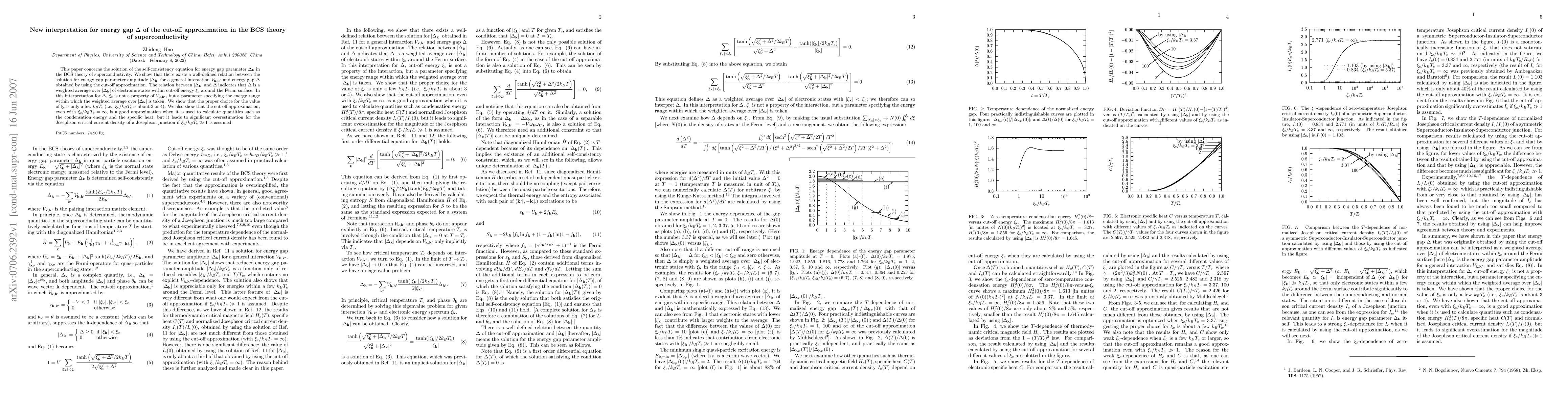 This paper concerns the solution of the self-consistency equation for energy gap parameter $\Delta_{\bf k}$ in the BCS theory of superconductivity. We show that there exists a well-defined relation between the solution for energy gap parameter amplitude $|\Delta_{\bf k}|$ for a general interaction $V_{{\bf k},{\bf k}'}$ and energy gap $\Delta$ obtained by using the cut-off approximation. The relation between $|\Delta_{\bf k}|$ and $\Delta$ indicates that $\Delta$ is a weighted average over $|\Delta_{\bf k}|$ of electronic states within cut-off energy $\xi_c$ around the Fermi surface. In this interpretation for $\Delta$, $\xi_c$ is not a property of $V_{{\bf k},{\bf k}'}$, but a parameter specifying the energy range within which the weighted average over $|\Delta_{\bf k}|$ is taken. We show that the proper choice for the value of $\xi_c$ is only a few $k_BT_c$ (i.e., $\xi_c/k_BT_c$ is about 3 or 4). We also show that the cut-off approximation, even with $\xi_c/k_BT_c=\infty$, is a good approximation when it is used to calculate quantities such as the condensation energy and the specific heat, but it leads to significant overestimation for the Josephson critical current density of a Josephson junction if $\xi_c/k_BT_c \gg 1$ is assumed.