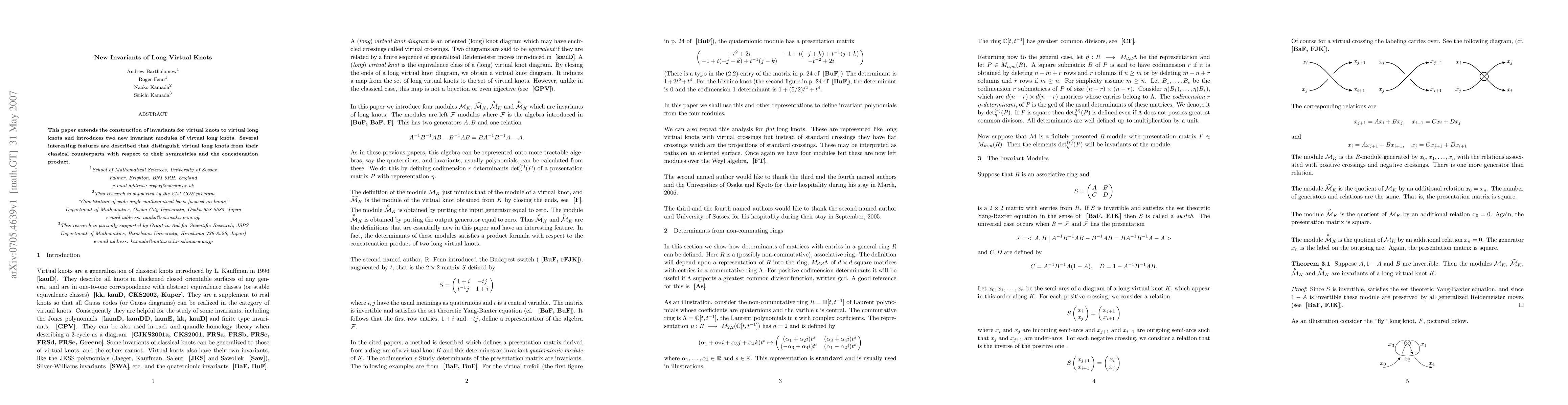 This paper develops new invariants for virtual long knots, introducing two distinct invariant modules, and highlights unique features differentiating virtual long knots from classical knots, particularly in terms of symmetry and concatenation.