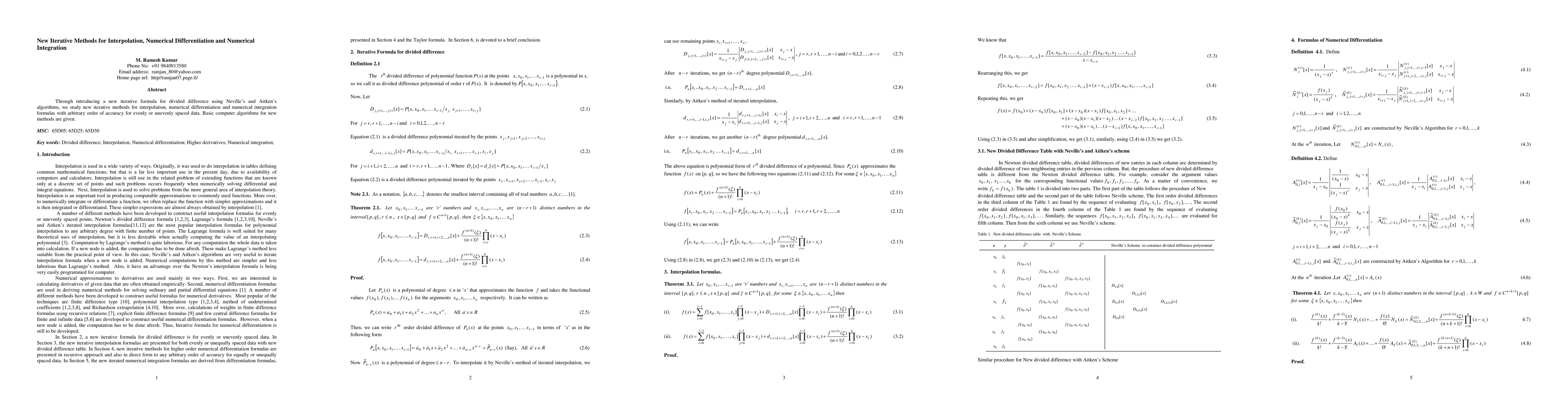 This paper proposes new iterative methods for interpolation, numerical differentiation, and numerical integration using Neville's and Aitken's algorithms to develop formulas with arbitrary accuracy for both evenly and unevenly spaced data. Basic computer algorithms for these methods are also provided.