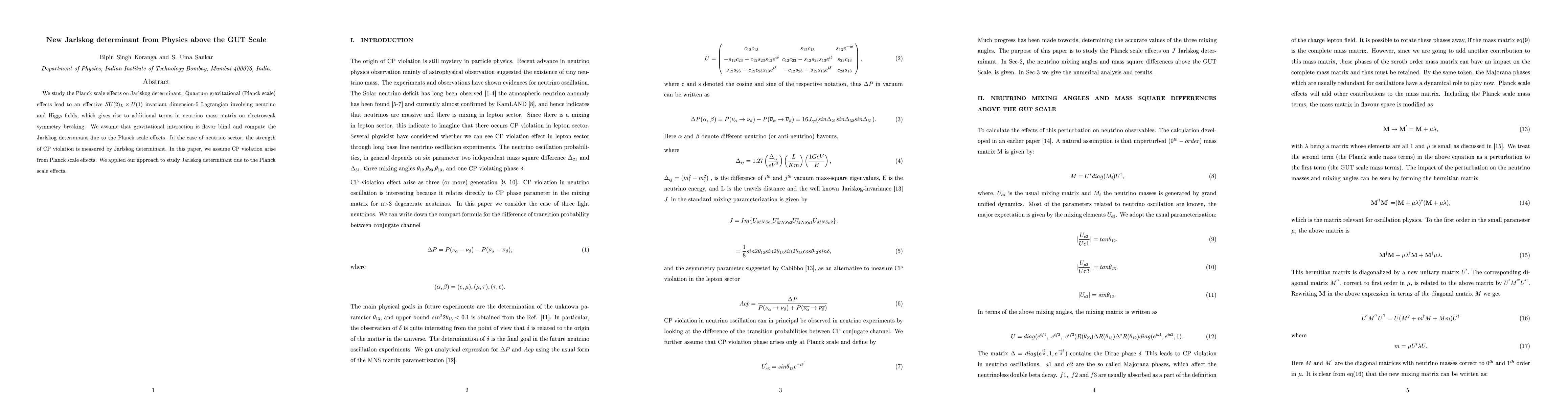 The paper introduces a novel method to compute the Jarlskog determinant incorporating Planck scale effects, expanding the framework for understanding CP violation in neutrino physics.