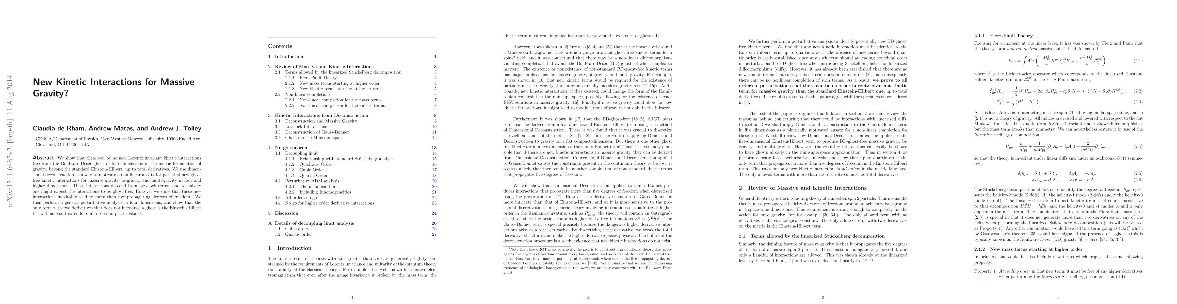 The paper presents a comprehensive perturbative and dimensional deconstruction analysis, demonstrating the absence of new ghost-free kinetic interactions in massive gravity beyond the Einstein-Hilbert term in four dimensions.