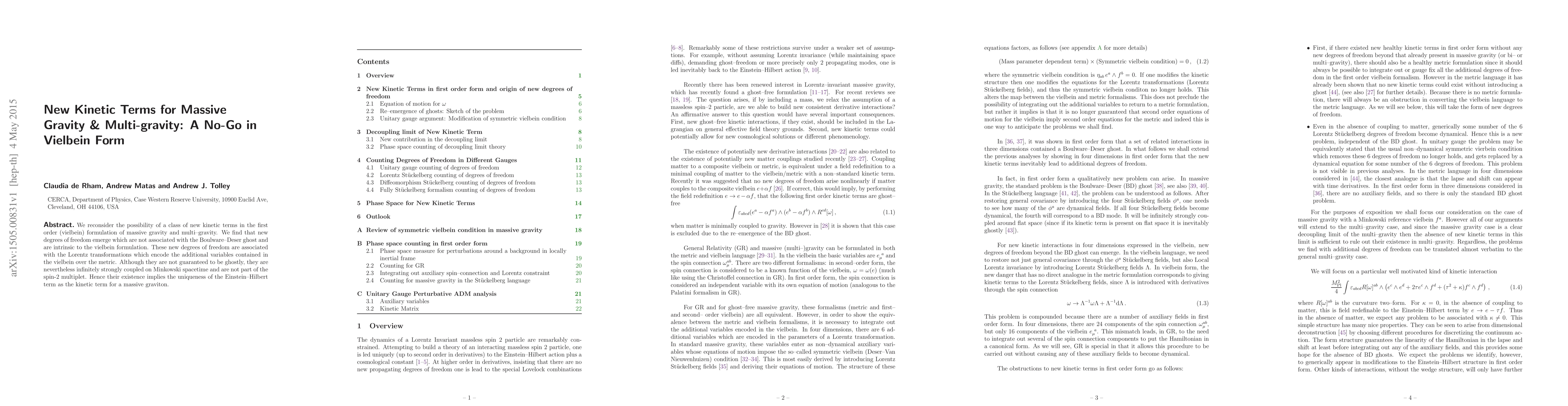 We reconsider the possibility of a class of new kinetic terms in the first order (vielbein) formulation of massive gravity and multi-gravity. We find that new degrees of freedom emerge which are not associated with the Boulware--Deser ghost and are intrinsic to the vielbein formulation. These new degrees of freedom are associated with the Lorentz transformations which encode the additional variables contained in the vielbein over the metric. Although they are not guaranteed to be ghostly, they are nevertheless infinitely strongly coupled on Minkowski spacetime and are not part of the spin-2 multiplet. Hence their existence implies the uniqueness of the Einstein--Hilbert term as the kinetic term for a massive graviton.
