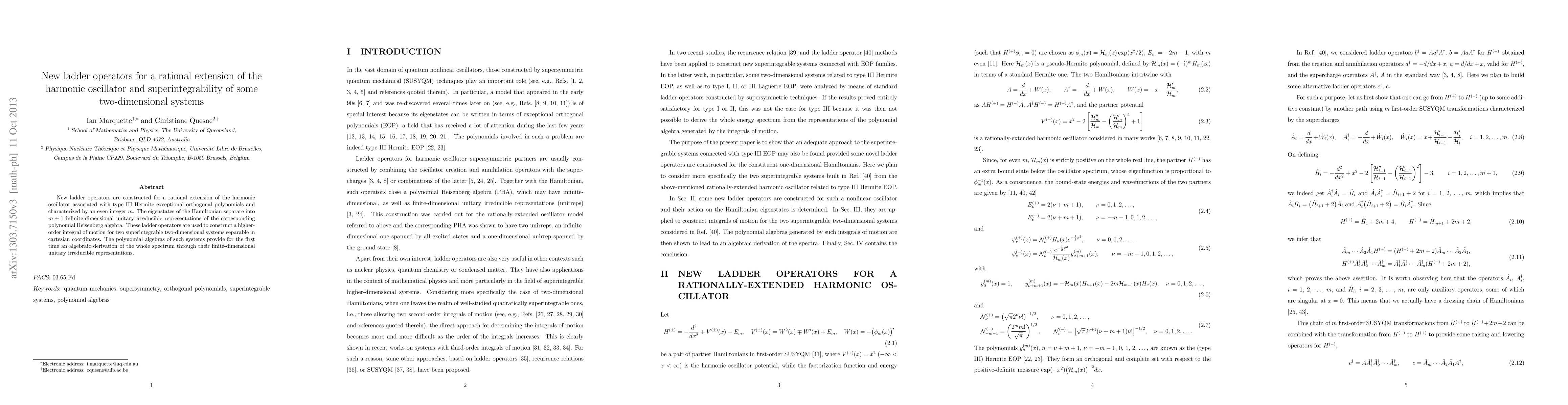 New ladder operators are constructed for a rational extension of the harmonic oscillator associated with type III Hermite exceptional orthogonal polynomials and characterized by an even integer $m$. The eigenstates of the Hamiltonian separate into $m+1$ infinite-dimensional unitary irreducible representations of the corresponding polynomial Heisenberg algebra. These ladder operators are used to construct a higher-order integral of motion for two superintegrable two-dimensional systems separable in cartesian coordinates. The polynomial algebras of such systems provide for the first time an algebraic derivation of the whole spectrum through their finite-dimensional unitary irreducible representations.