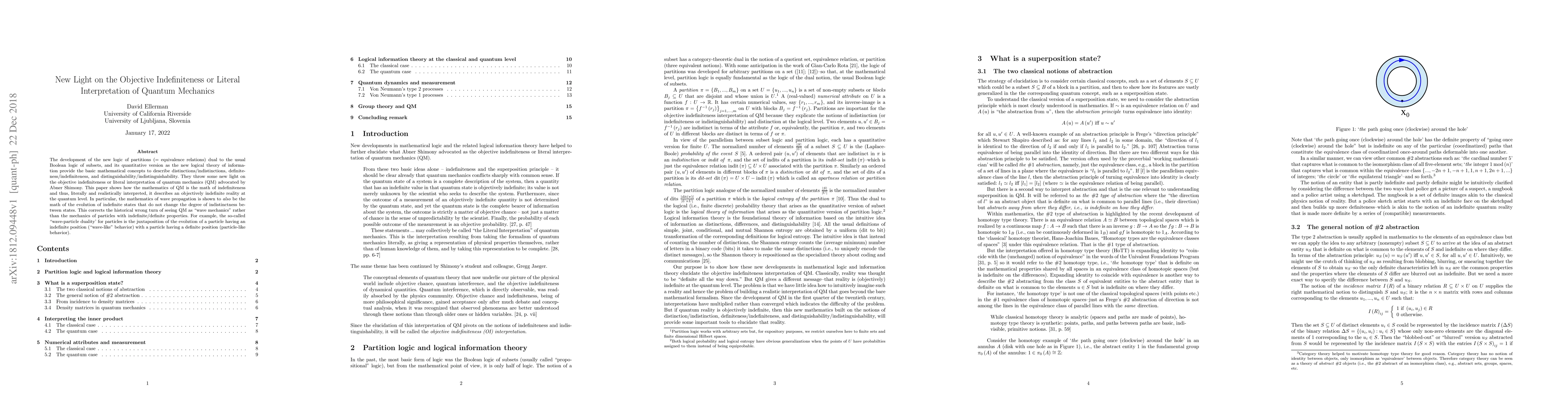 The development of the new logic of partitions (= equivalence relations) dual to the usual Boolean logic of subsets, and its quantitative version as the new logical theory of information provide the basic mathematical concepts to describe distinctions/indistinctions, definiteness/indefiniteness, and distinguishability/indistinguishability. They throw some new light on the objective indefiniteness or literal interpretation of quantum mechanics (QM) advocated by Abner Shimony. This paper shows how the mathematics of QM is the math of indefiniteness and thus, literally and realistically interpreted, it describes an objectively indefinite reality at the quantum level. In particular, the mathematics of wave propagation is shown to also be the math of the evolution of indefinite states that do not change the degree of indistinctness between states. This corrects the historical wrong turn of seeing QM as "wave mechanics" rather than the mechanics of particles with indefinite/definite properties. For example, the so-called "wave-particle duality' for particles is the juxtaposition of the evolution of a particle having an indefinite position ("wave-like" behavior) with a particle having a definite position (particle-like behavior).
