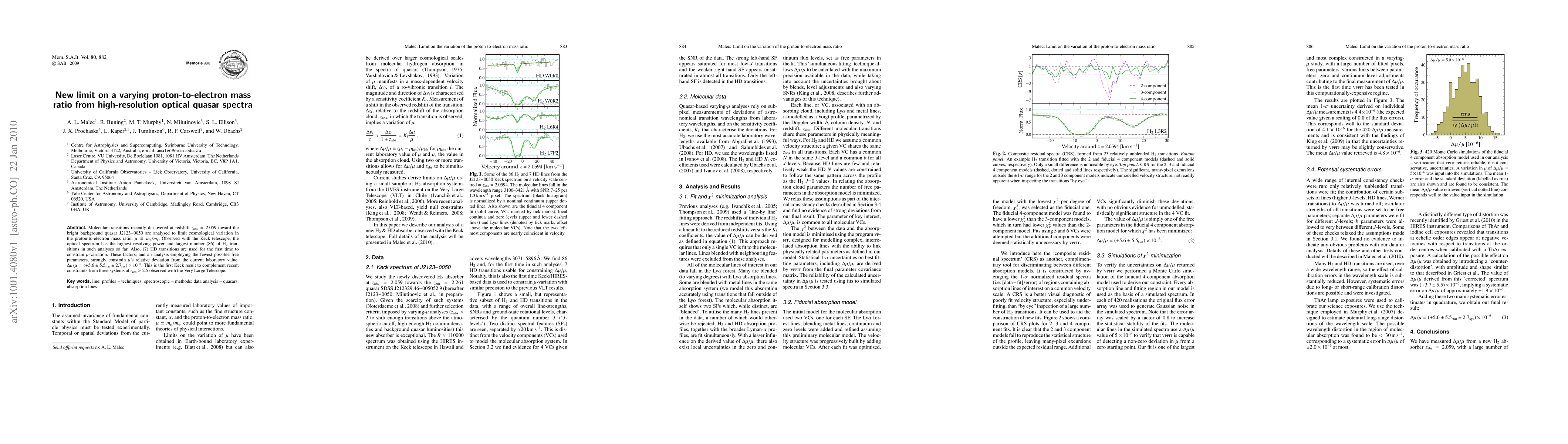 Researchers have set a new limit on the proton-to-electron mass ratio from high-resolution optical quasar spectra, constraining its variation to within 10^-6.