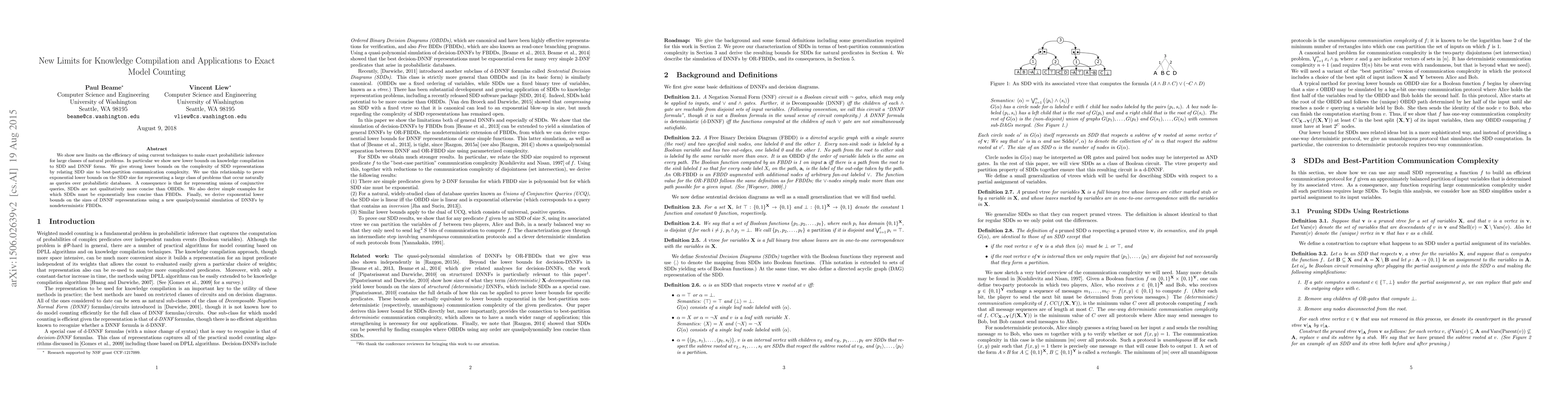We show new limits on the efficiency of using current techniques to make exact probabilistic inference for large classes of natural problems. In particular we show new lower bounds on knowledge compilation to SDD and DNNF forms. We give strong lower bounds on the complexity of SDD representations by relating SDD size to best-partition communication complexity. We use this relationship to prove exponential lower bounds on the SDD size for representing a large class of problems that occur naturally as queries over probabilistic databases. A consequence is that for representing unions of conjunctive queries, SDDs are not qualitatively more concise than OBDDs. We also derive simple examples for which SDDs must be exponentially less concise than FBDDs. Finally, we derive exponential lower bounds on the sizes of DNNF representations using a new quasipolynomial simulation of DNNFs by nondeterministic FBDDs.