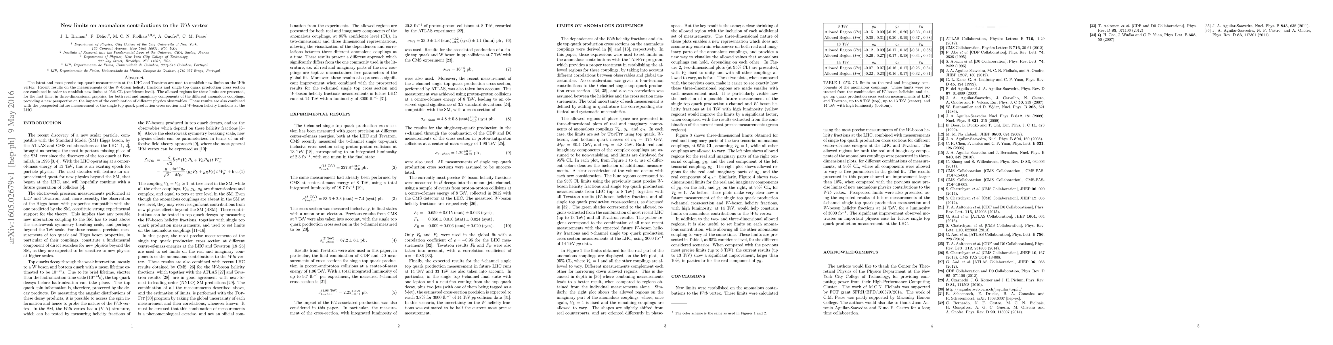 The latest and most precise top quark measurements at the LHC and Tevatron are used to establish new limits on the $Wtb$ vertex. Recent results on the measurements of the $W$-boson helicity fractions and single top quark production cross section are combined in order to establish new limits at 95% CL (confidence level). The allowed regions for these limits are presented, for the first time, in three-dimensional graphics, for both real and imaginary components of the different anomalous couplings, providing a new perspective on the impact of the combination of different physics observables. These results are also combined with the prospected future measurement of the single top quark production cross section and $W$-boson helicity fractions at the LHC.