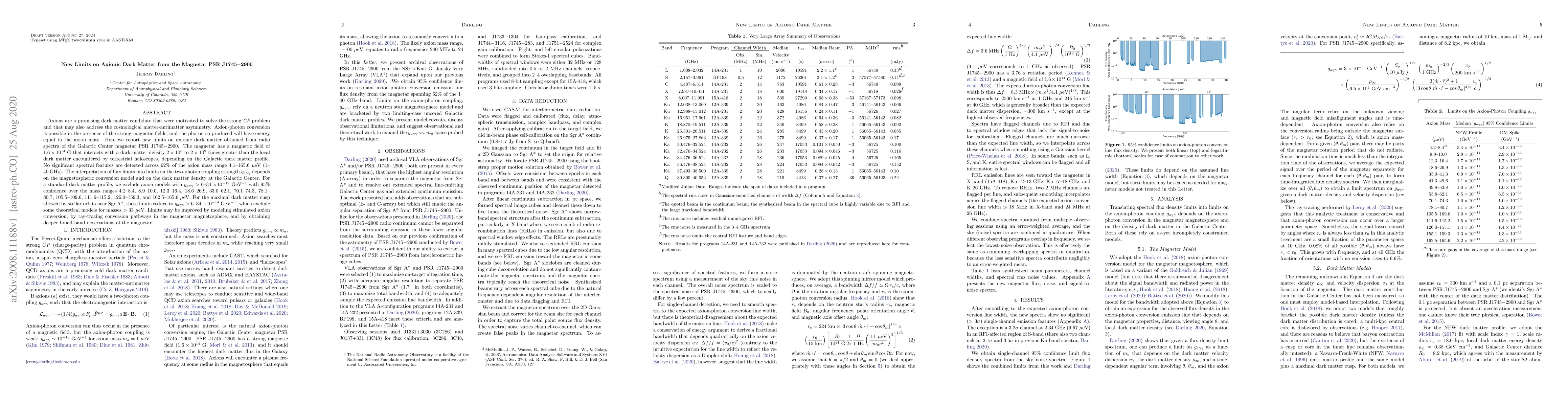 Axions are a promising dark matter candidate that were motivated to solve the strong CP problem and that may also address the cosmological matter-antimatter asymmetry. Axion-photon conversion is possible in the presence of the strong magnetic fields, and the photon so produced will have energy equal to the axion mass. Here we report new limits on axionic dark matter obtained from radio spectra of the Galactic Center magnetar PSR J1745-2900. The magnetar has a magnetic field of $1.6\times10^{14}$ G that interacts with a dark matter density $2\times10^5$ to $2\times10^9$ times greater than the local dark matter encountered by terrestrial haloscopes, depending on the Galactic dark matter profile. No significant spectral features are detected across 62% of the axion mass range 4.1-165.6 $\mu$eV (1-40 GHz). The interpretation of flux limits into limits on the two-photon coupling strength $g_{a\gamma\gamma}$ depends on the magnetospheric conversion model and on the dark matter density at the Galactic Center. For a standard dark matter profile, we exclude axion models with $g_{a\gamma\gamma}> $ 6-34 $\times 10^{-12}$ GeV$^{-1}$ with 95% confidence over the mass ranges 4.2-8.4, 8.9-10.0, 12.3-16.4, 18.6-26.9, 33.0-62.1, 70.1-74.3, 78.1-80.7, 105.5-109.6, 111.6-115.2, 126.0-159.3, and 162.5-165.6 $\mu$eV. For the maximal dark matter cusp allowed by stellar orbits near Sgr A*, these limits reduce to $g_{a\gamma\gamma} > $ 6-34 $ \times10^{-14}$ GeV$^{-1}$, which exclude some theoretical models for masses $> 33$ $\mu$eV. Limits may be improved by modeling stimulated axion conversion, by ray-tracing conversion pathways in the magnetar magnetosphere, and by obtaining deeper broad-band observations of the magnetar.