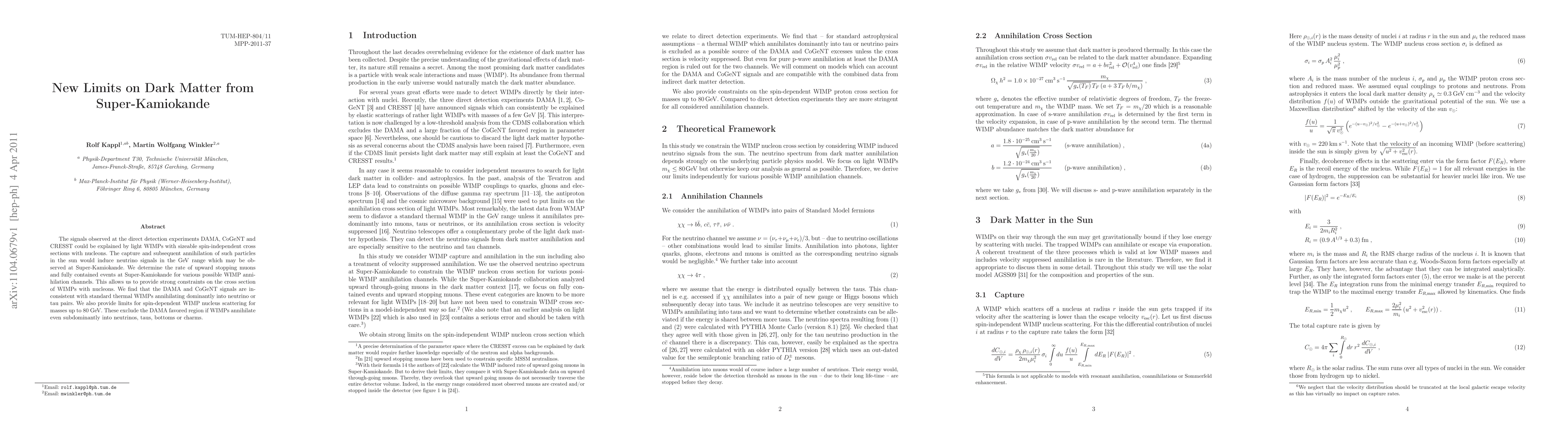 This paper uses Super-Kamiokande data to set new limits on the interaction cross-section of WIMPs with nucleons, ruling out the DAMA and CoGeNT signals as evidence for standard thermal WIMPs. It also excludes spin-dependent scattering for WIMPs up to 80 GeV, particularly if they annihilate into neutrinos, taus, bottoms, or charms.