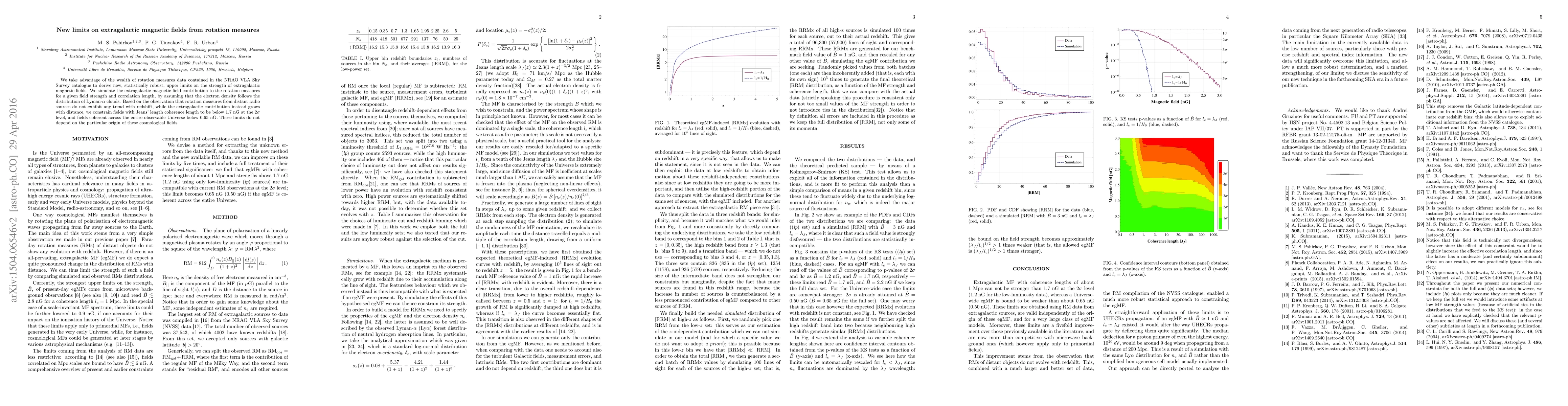 This paper uses rotation measure data from the NRAO VLA Sky Survey to establish new upper limits on extragalactic magnetic fields, finding fields with Jeans' length coherence below 1.7 nG at the 2σ level and fields coherent across the entire observable Universe below 0.65 nG. The results are independent of the magnetic field's origin.