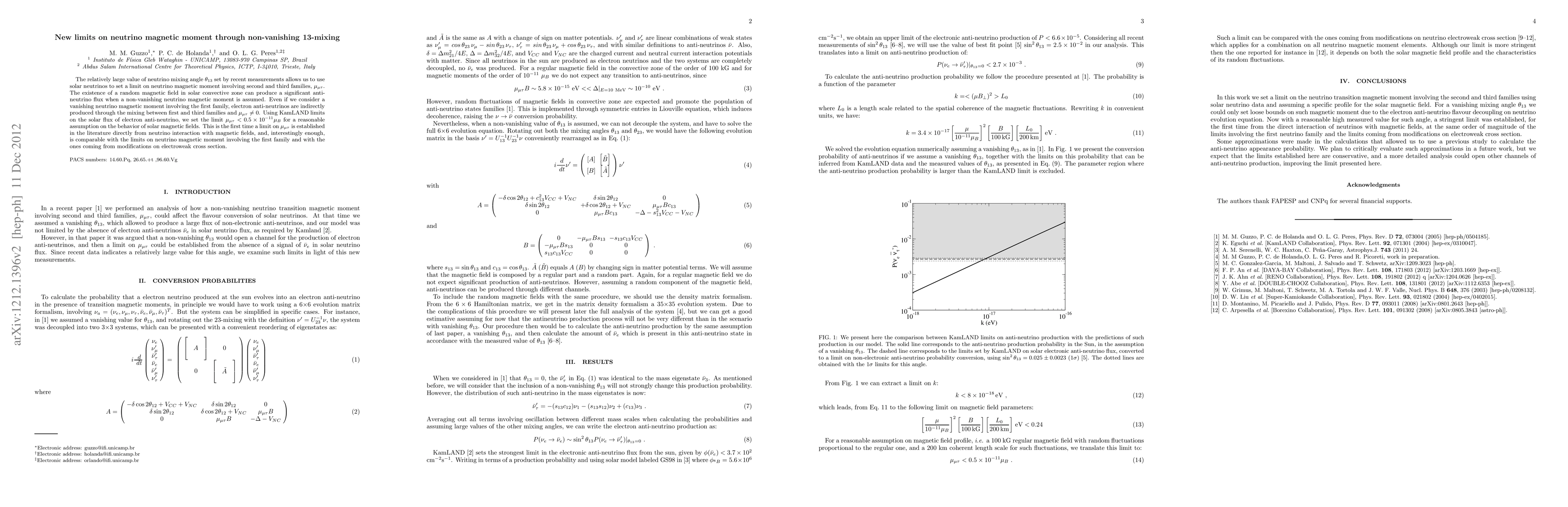 The relatively large value of neutrino mixing angle \theta_{13} set by recent measurements allows us to use solar neutrinos to set a limit on neutrino magnetic moment involving second and third families, \mu_{\mu\tau}. The existence of a random magnetic field in solar convective zone can produce a significant anti-neutrino flux when a non-vanishing neutrino magnetic moment is assumed. Even if we consider a vanishing neutrino magnetic moment involving the first family, electron anti-neutrinos are indirectly produced through the mixing between first and third families and non-vanishing \mu_{\mu\tau}. Using KamLAND limits on the solar flux of electron anti-neutrino, we set the limit \mu_{\mu\tau} < 0.5e-11 Bohr magneton for a reasonable assumption on the behavior of solar magnetic fields. This is the first time a limit on \mu_{\mu\tau} is established in the literature directly from neutrino interaction with magnetic fields, and, interestingly enough, is comparable with the limits on neutrino magnetic moment involving the first family and with the ones coming from modifications on electroweak cross section.