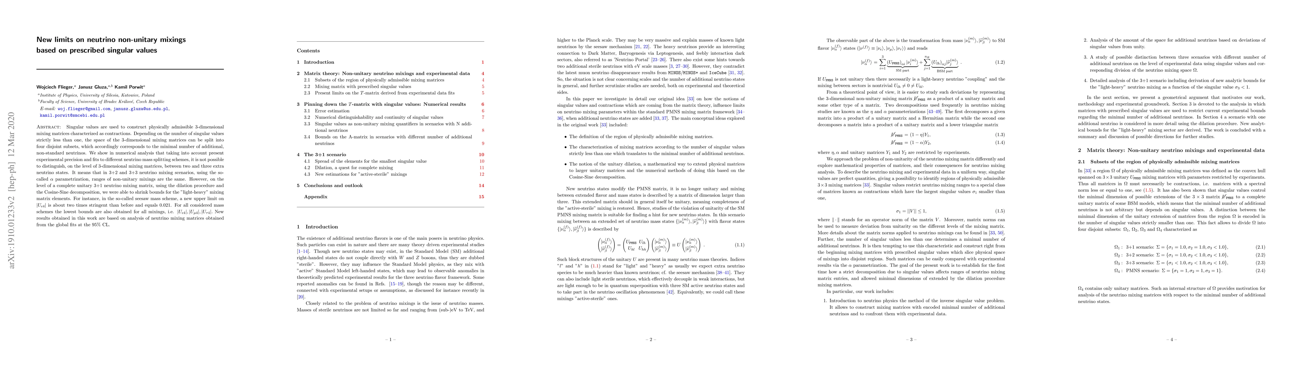 Singular values are used to construct physically admissible 3-dimensional mixing matrices characterized as contractions. Depending on the number of singular values strictly less than one, the space of the 3-dimensional mixing matrices can be split into four disjoint subsets, which accordingly corresponds to the minimal number of additional, non-standard neutrinos. We show in numerical analysis that taking into account present experimental precision and fits to different neutrino mass splitting schemes, it is not possible to distinguish, on the level of 3-dimensional mixing matrices, between two and three extra neutrino states. It means that in 3+2 and 3+3 neutrino mixing scenarios, using the so-called $\alpha$ parametrization, ranges of non-unitary mixings are the same. However, on the level of a complete unitary 3+1 neutrino mixing matrix, using the dilation procedure and the Cosine-Sine decomposition, we were able to shrink bounds for the "light-heavy" mixing matrix elements. For instance, in the so-called seesaw mass scheme, a new upper limit on $| U_{e4} | $ is about two times stringent than before and equals 0.021. For all considered mass schemes the lowest bounds are also obtained for all mixings, i.e. $| U_{e4} | , | U_{\mu 4} | , | U_{\tau 4} | .$ New results obtained in this work are based on analysis of neutrino mixing matrices obtained from the global fits at the 95% CL.