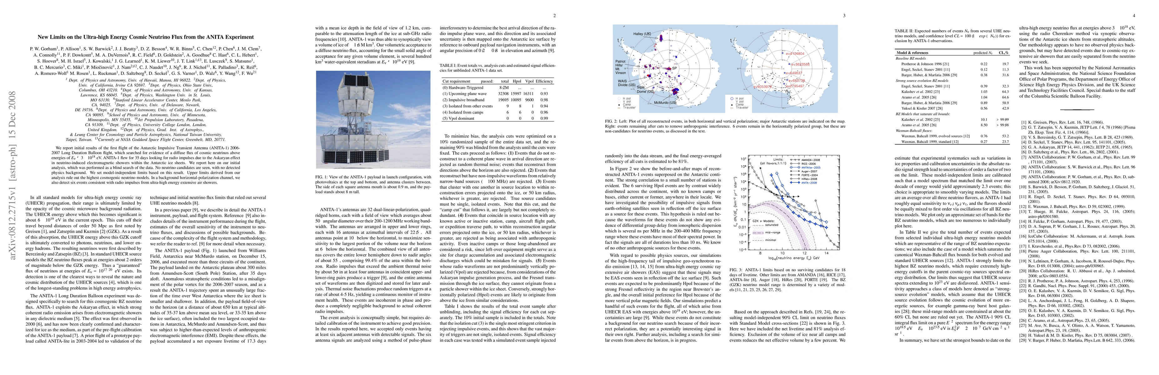 This paper reports initial results from the ANITA-1 experiment, which searched for ultra-high energy cosmic neutrinos above 3 EeV. No neutrino candidates were detected, leading to model-independent upper limits that rule out the highest cosmogenic neutrino models.