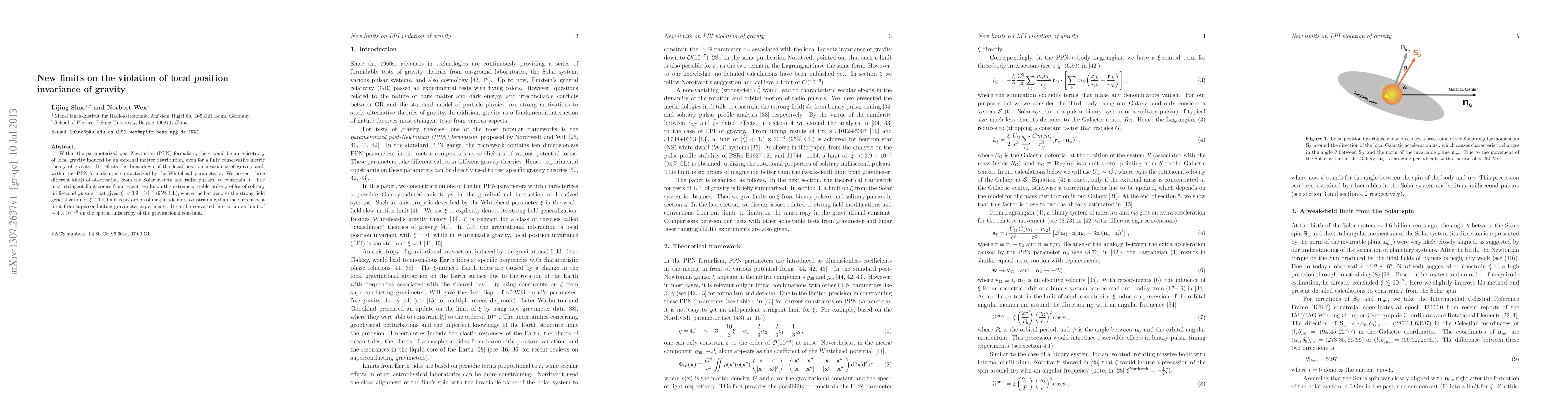 Within the parameterized post-Newtonian (PPN) formalism, there could be an anisotropy of local gravity induced by an external matter distribution, even for a fully conservative metric theory of gravity. It reflects the breakdown of the local position invariance of gravity and, within the PPN formalism, is characterized by the Whitehead parameter $\xi$. We present three different kinds of observation, from the Solar system and radio pulsars, to constrain it. The most stringent limit comes from recent results on the extremely stable pulse profiles of solitary millisecond pulsars, that gives $|\hat \xi| < 3.9 \times 10^{-9}$ (95% CL), where the hat denotes the strong-field generalization of $\xi$. This limit is six orders of magnitude more constraining than the current best limit from superconducting gravimeter experiments. It can be converted into an upper limit of $\sim 4 \times 10^{-16}$ on the spatial anisotropy of the gravitational constant.