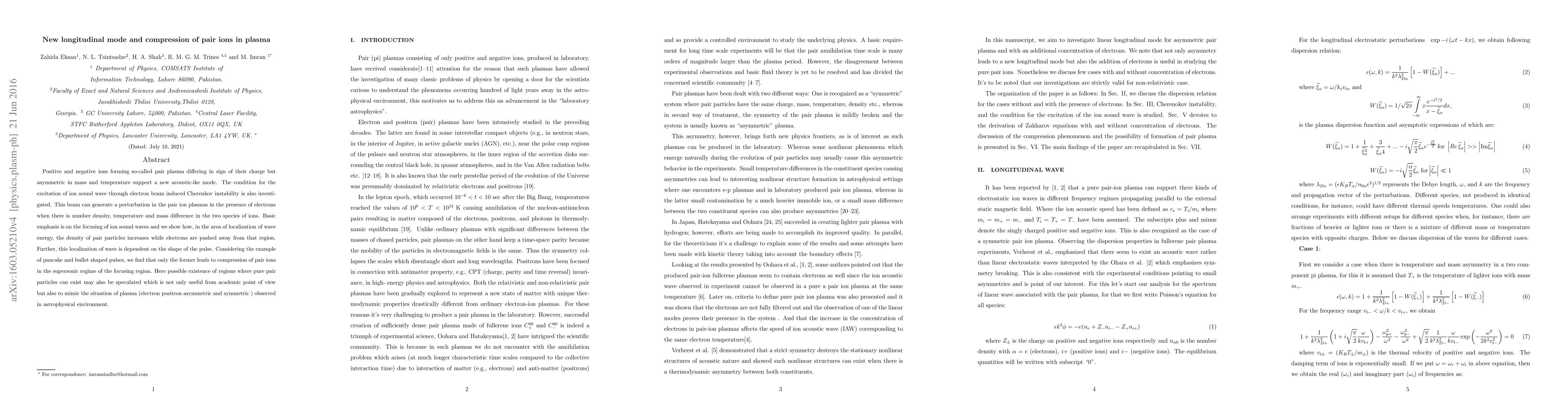 The paper presents a detailed theoretical analysis of a new acoustic mode in asymmetric pair plasmas, including equations for ion sound wave spectrum and damping rates, and demonstrates self-focusing of ion sound waves leading to pair ion compression.