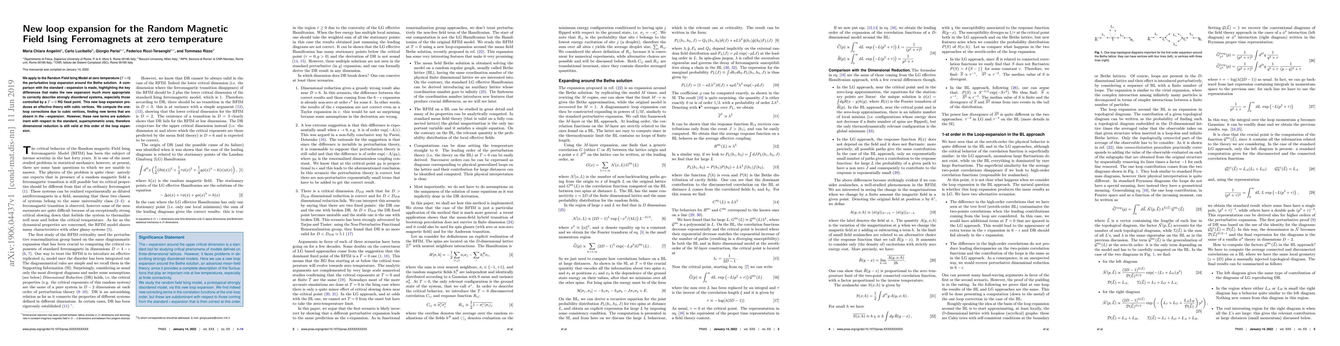 We apply to the Random Field Ising Model at zero temperature (T= 0) the perturbative loop expansion around the Bethe solution. A comparison with the standard epsilon-expansion is made, highlighting the key differences that make the new expansion much more appropriate to correctly describe strongly disordered systems, especially those controlled by a T = 0 RG fixed point. This new loop expansion produces an effective theory with cubic vertices. We compute the one-loop corrections due to cubic vertices, finding new terms that are absent in the epsilon-expansion. However, these new terms are subdominant with respect to the standard, supersymmetric ones, therefore dimensional reduction is still valid at this order of the loop expansion.