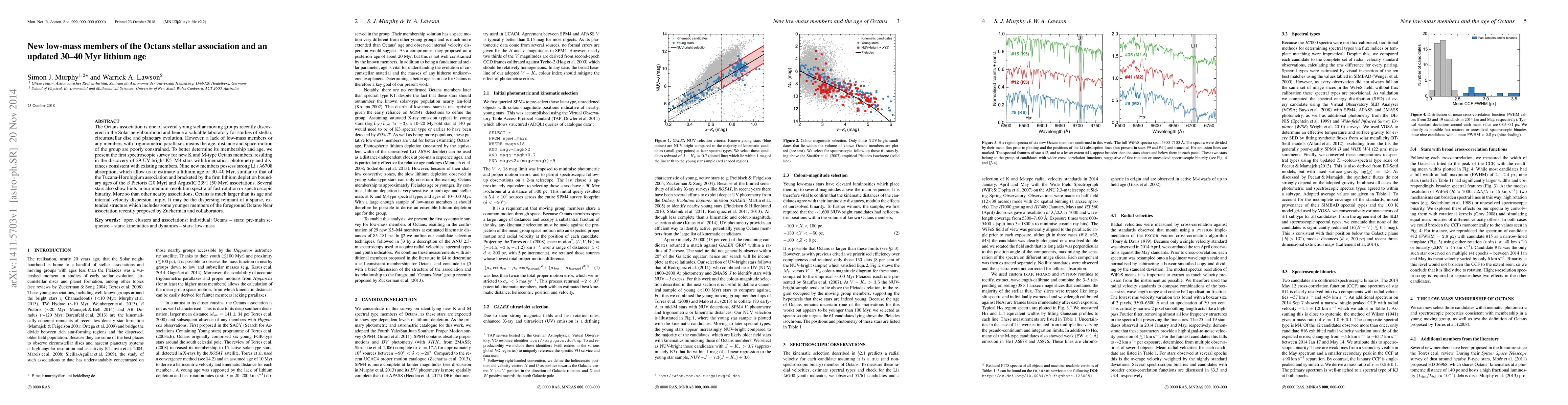 The paper reports the discovery of 29 new low-mass K5-M4 stars in the Octans stellar association, enhancing its membership and allowing for an updated lithium age estimate of 30-40 Myr. This suggests Octans may be the dispersing remnant of a larger, older structure.