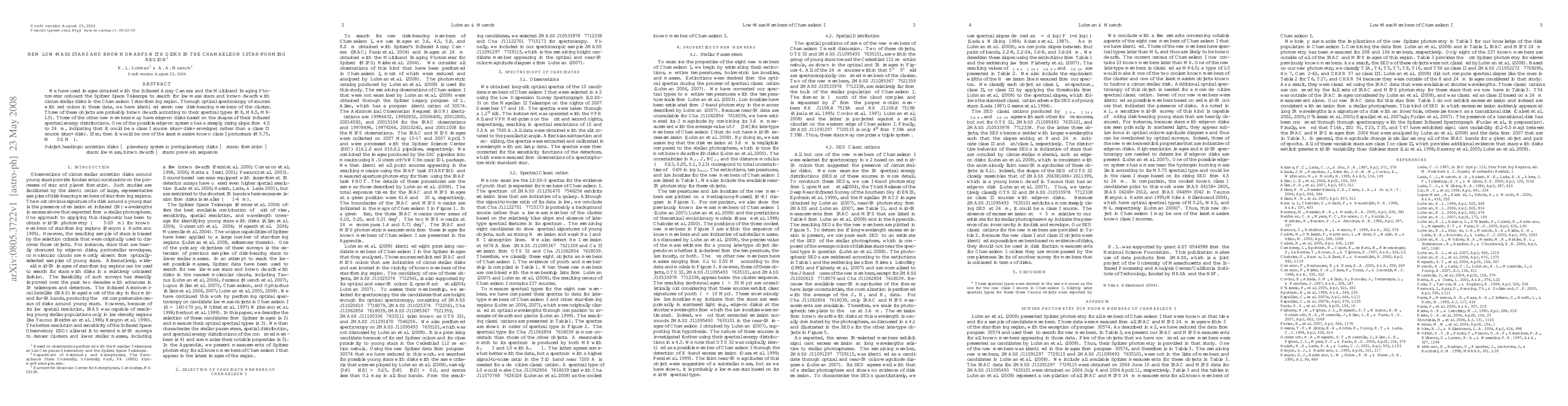 This study identifies seven new low-mass stars and brown dwarfs with circumstellar disks in the Chamaeleon I star-forming region using Spitzer Space Telescope data. Among them, three are likely brown dwarfs, and one potential edge-on system may be a class I protostar with a very low mass.