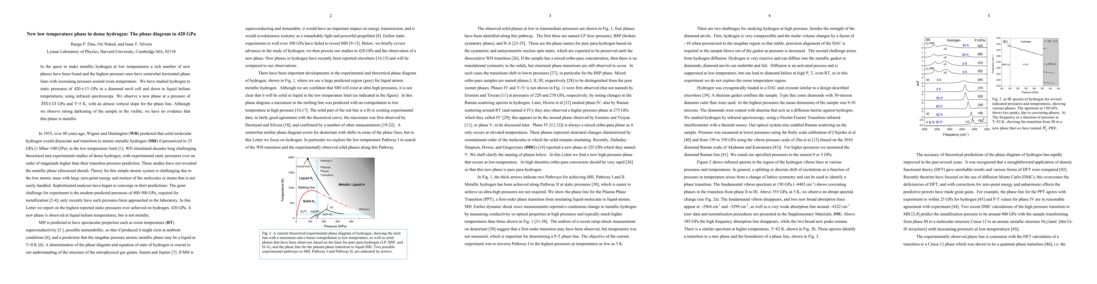 Researchers discovered a new phase of hydrogen at 421 GPa pressure and 5 K temperature, but found no evidence it is metallic hydrogen. This finding expands our understanding of the phase diagram for dense hydrogen.