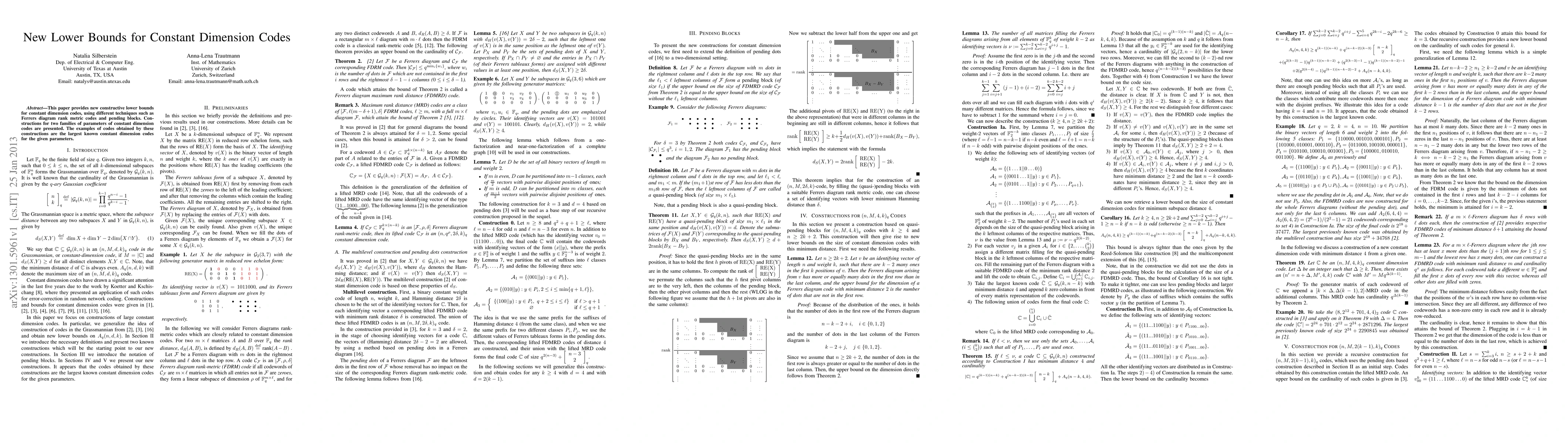 The development of a novel construction method for constant dimension codes with improved parameters and lower bounds.