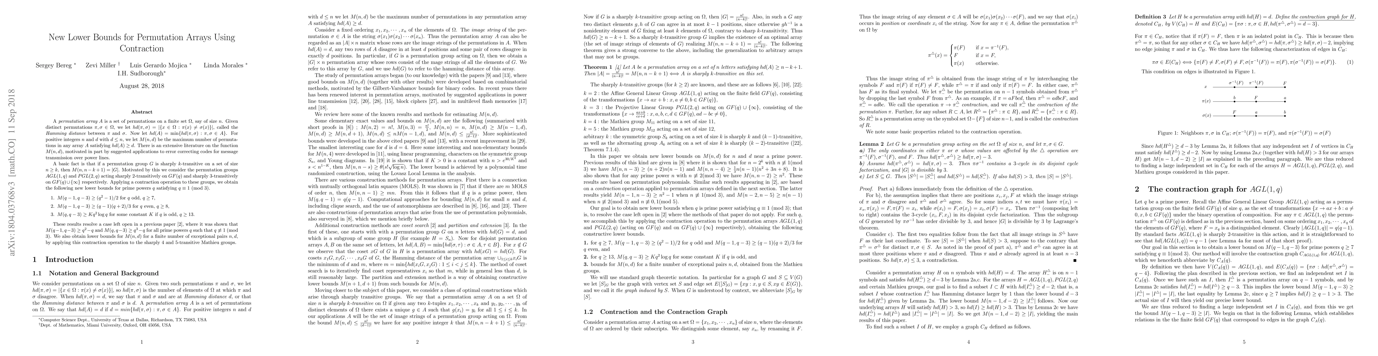 This paper establishes new lower bounds for permutation arrays using contraction operations, improving existing results and resolving a previously open case in error-correcting codes.