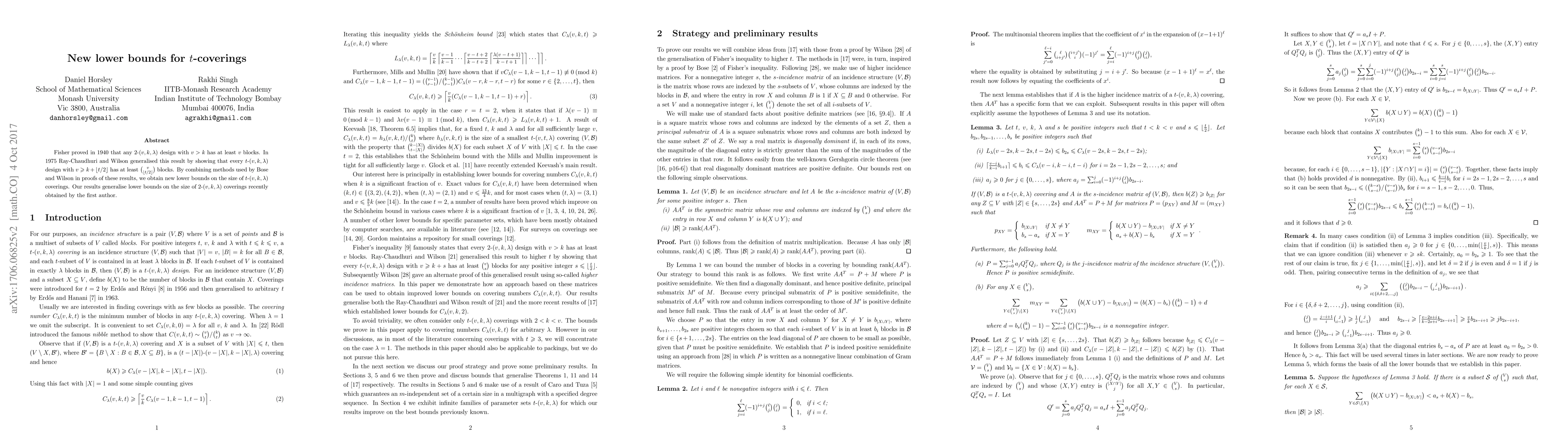 New lower bounds for t-coverings have been established, building upon previous results for 2-designs, providing improved estimates for the minimum number of blocks in t-designs with specific parameters.