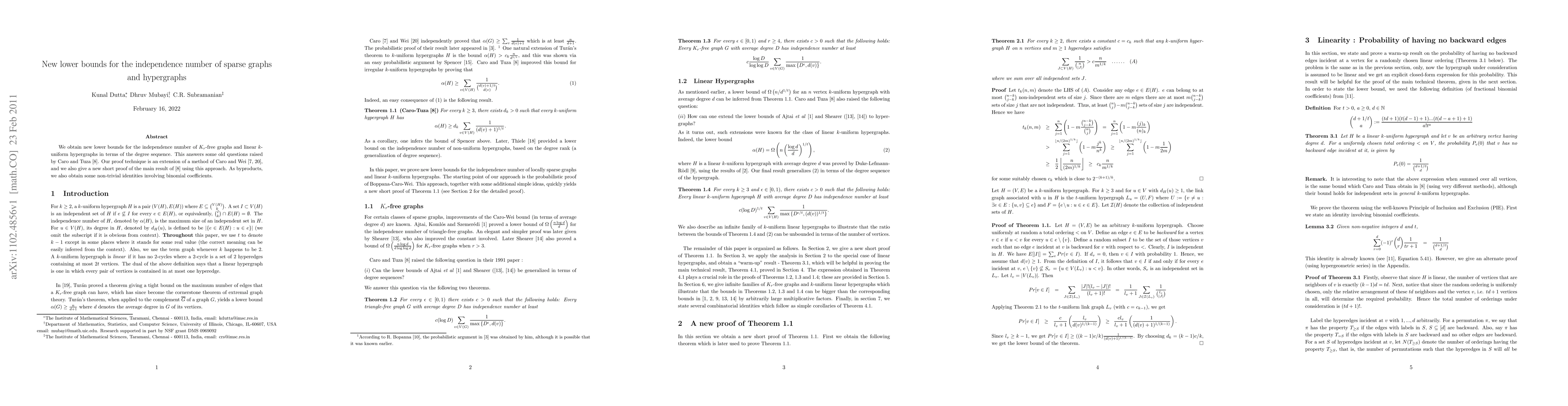This paper establishes new lower bounds for the independence number of sparse graphs and hypergraphs in terms of their degree sequences, answering old questions and providing a short proof of a main result.
