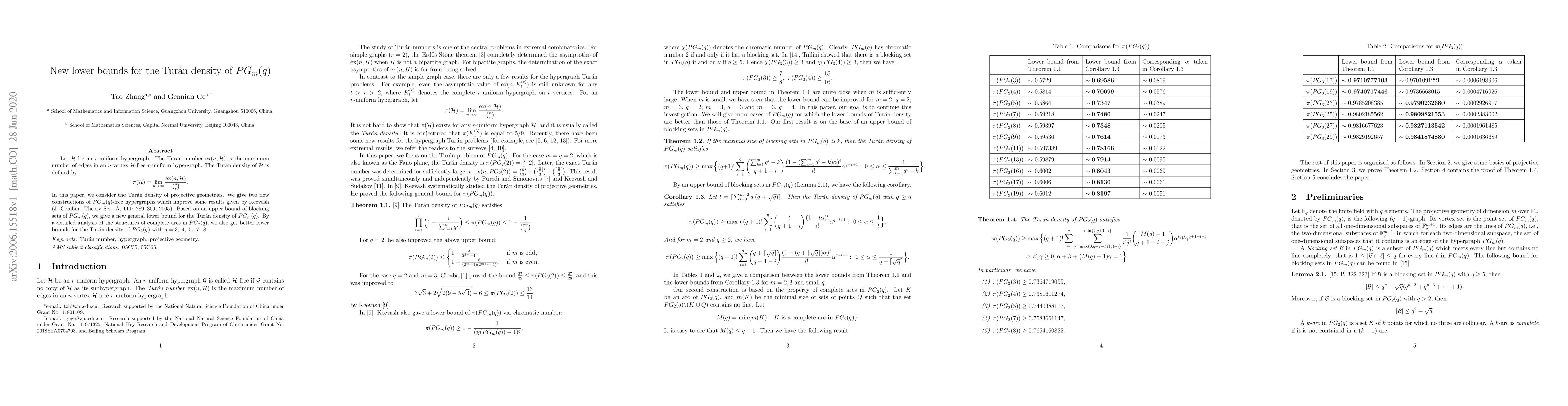 Let $\mathcal{H}$ be an $r$-uniform hypergraph. The Tur\'{a}n number $\text{ex}(n,\mathcal{H})$ is the maximum number of edges in an $n$-vertex $\mathcal{H}$-free $r$-uniform hypergraph. The Tur\'{a}n density of $\mathcal{H}$ is defined by \[\pi(\mathcal{H})=\lim_{n\rightarrow\infty}\frac{\text{ex}(n,\mathcal{H})}{\binom{n}{r}}.\] In this paper, we consider the Tur\'{a}n density of projective geometries. We give two new constructions of $PG_{m}(q)$-free hypergraphs which improve some results given by Keevash (J. Combin. Theory Ser. A, 111: 289--309, 2005). Based on an upper bound of blocking sets of $PG_m(q)$, we give a new general lower bound for the Tur\'{a}n density of $PG_{m}(q)$. By a detailed analysis of the structures of complete arcs in $PG_2(q)$, we also get better lower bounds for the Tur\'{a}n density of $PG_2(q)$ with $q=3,\ 4,\ 5,\ 7,\ 8$.