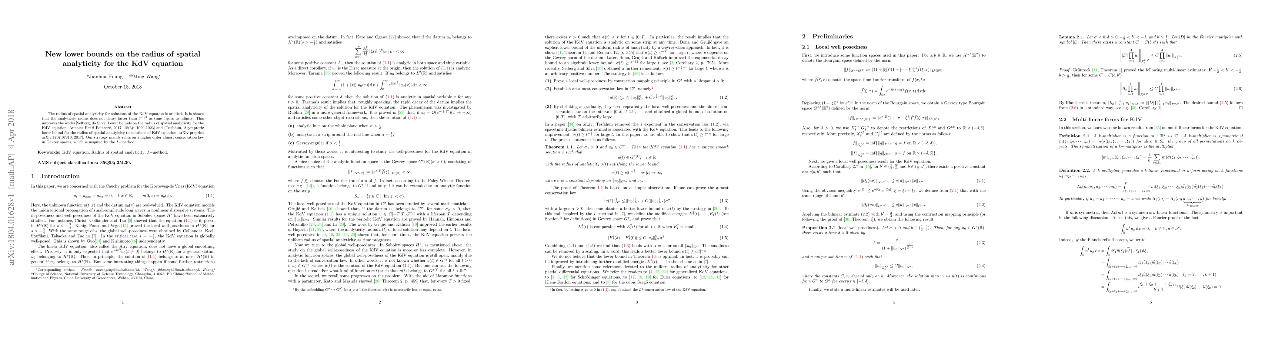 This paper establishes a new lower bound for the radius of spatial analyticity of solutions to the KdV equation, showing it does not decay faster than $t^{-1/4}$ as time $t$ increases. This improvement builds on previous works by utilizing a higher-order almost conservation law in Gevrey spaces, inspired by the $I$-method.