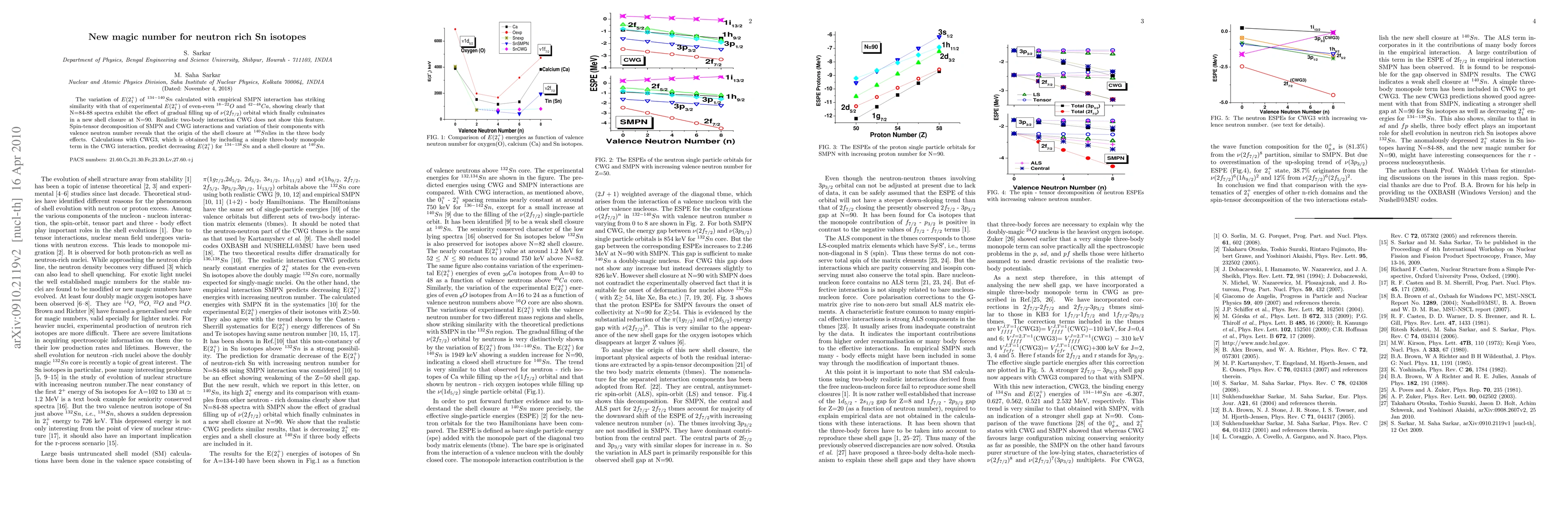 Researchers discovered a new magic number for neutron-rich Sn isotopes at N=90, which is not predicted by two-body interactions like CWG. A three-body interaction model predicts shell closure at 140Sn.