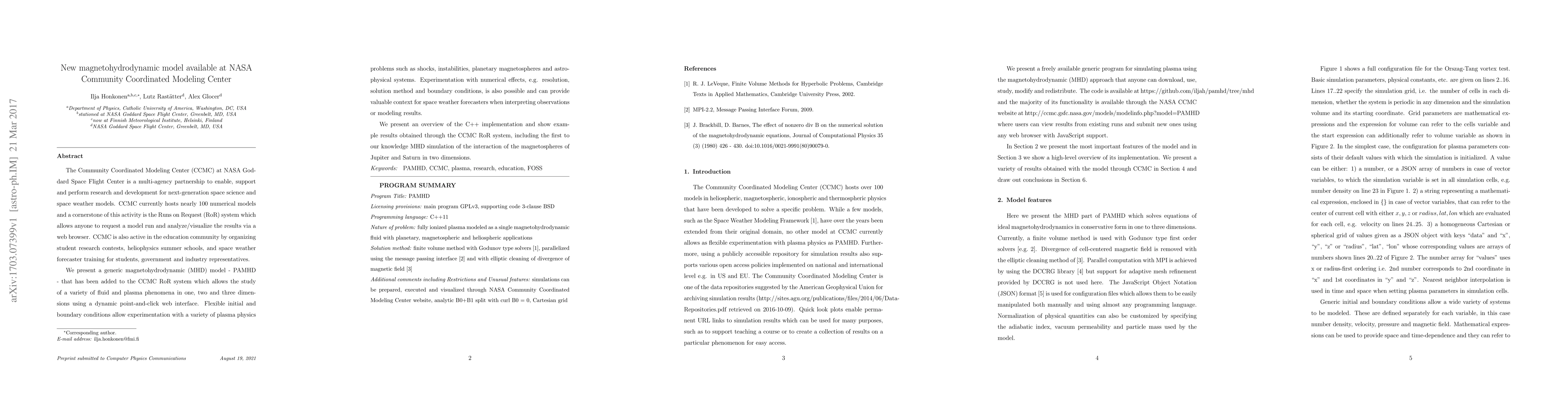 A new magnetohydrodynamic model called PAMHD has been developed to study fluid and plasma phenomena in one, two, and three dimensions, enabling researchers to simulate complex space weather events.
