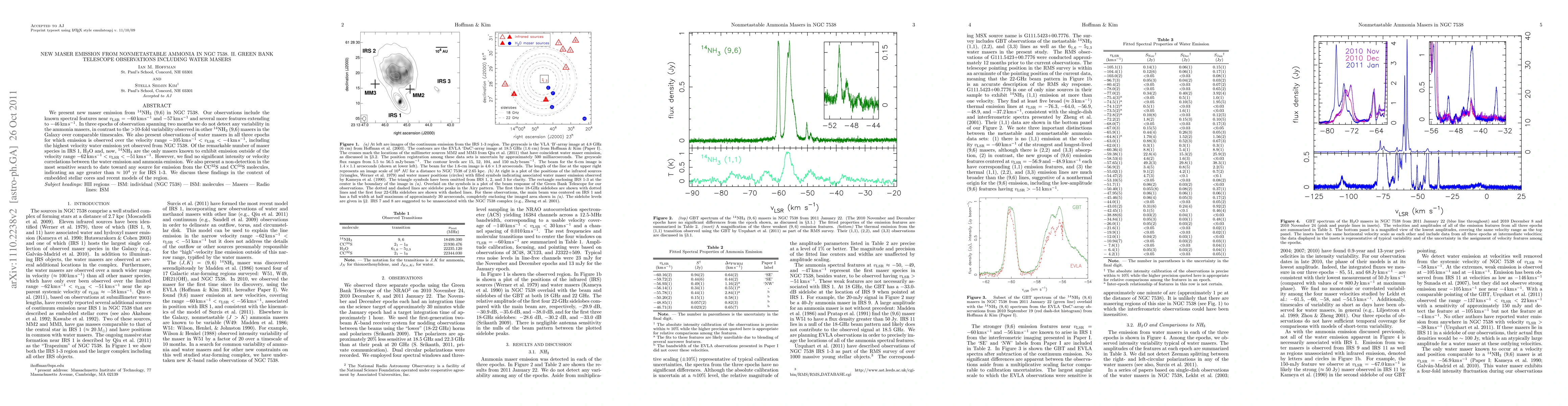 New observations from the Green Bank Telescope reveal stable ^{14}NH_3 (9,6) ammonia masers in NGC 7538, unlike variable masers in other Galactic sources. Water masers are also detected over a wide velocity range, but no correlation is found between water and ammonia emission. No emission from CC^{32}S and CC^{34}S molecules was found, suggesting IRS 1-3 is older than ~10^4 yr. These findings contribute to understanding embedded stellar cores and regional models.