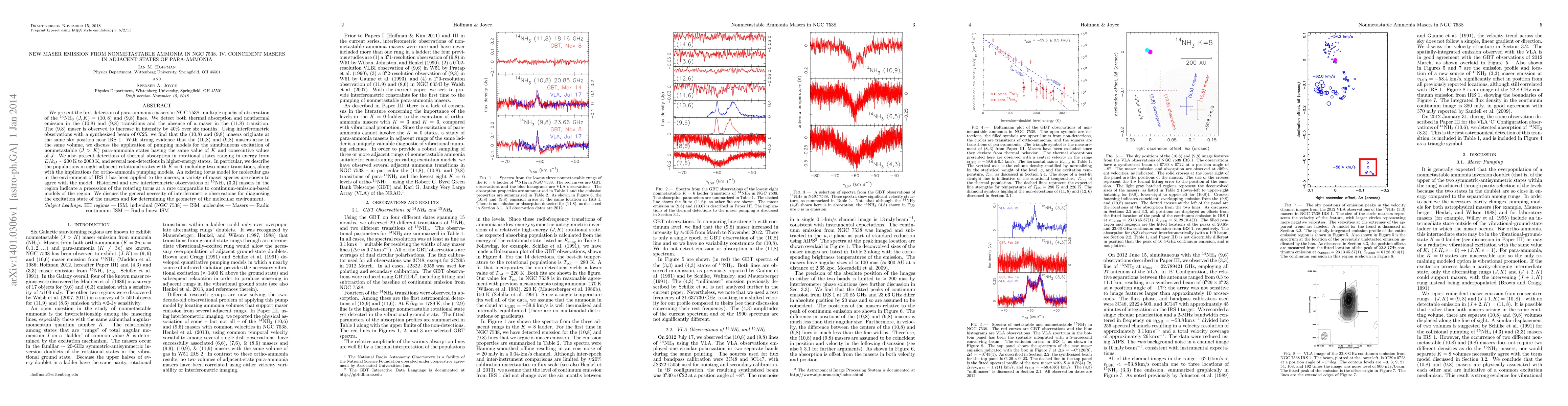 This paper reports the first detection of para-ammonia masers in NGC 7538, observing thermal absorption and nonthermal emission in specific transitions, with the (9,8) maser showing a 40% intensity increase over six months. Interferometric observations confirm the (10,8) and (9,8) masers originate from the same region near IRS1.